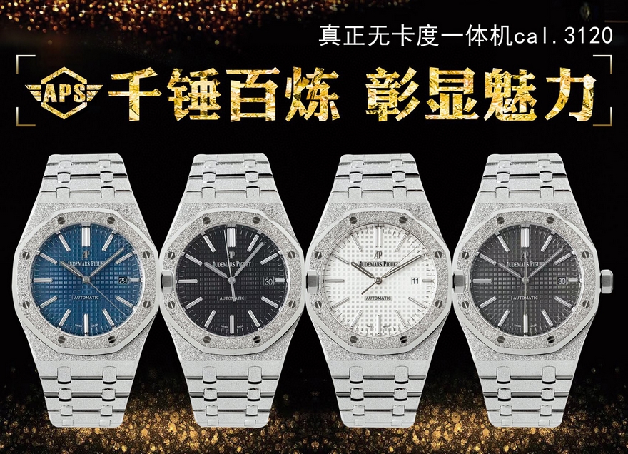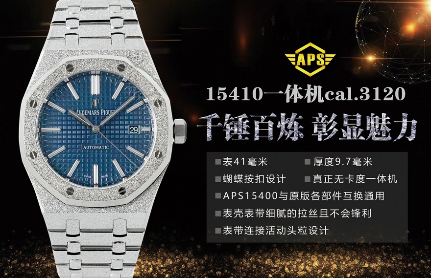 【品牌】爱彼【产品介绍】APS15410新品,霜金腕表爱彼霜金工艺俗称锤金工艺,亦叫“佛罗伦萨饰面”。这是一种颇具特色且渊远流长的装饰工艺,在光线的照射下,霜金工艺表面细微的凹槽会将光线折射,使得整个金属表面如同布满了钻石,因此,通过这种工艺装饰的腕表,只需轻轻的摆动,便会散发出如钻石般的绚丽光泽,让人爱不释手。霜金工艺是通过工匠捶打敲击而成,看似简单的操作,其实是极有考究的,需要反复的锤击及观察,完成后,还要为每个半成品进行反复的抛光及观察,是一件耗时费神的工艺活,当然,从腕表最终效果呈现的那一刻,所耗费的心血也物有所值。【款式】男款【尺寸】41mmx9.7mm【表带】精钢表带【镜面】蓝宝石镜面【机芯】cal.3120一体机芯【防水】50米【配件】原装盒,说明书,质保卡,吊牌,香港机打发票【品质检测】保证所有手表实物拍摄,所见即所得 , 手表发货前都会有严格检查测试,确保您收到的手表无质量问题