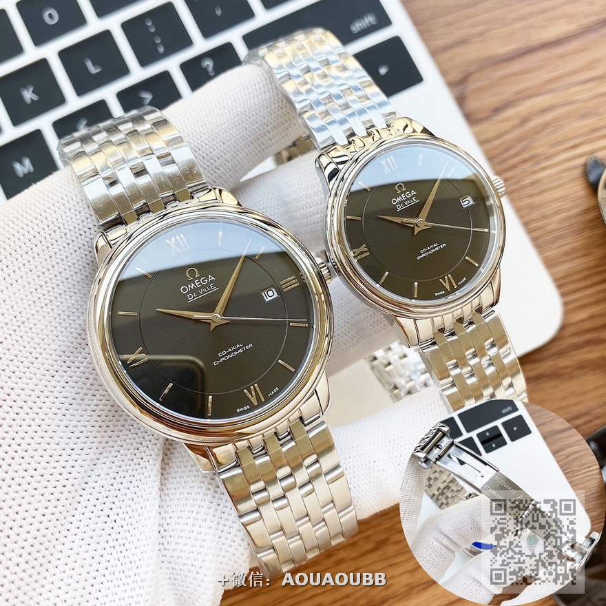【产品介绍】欧米茄-碟飞系列-情侣对表!台湾厂TW厂正品开模,字面与正品一致采用太阳纹,弧面时刻丁玻璃升级为高清拱型双卜蓝宝石玻璃(显示更清晰,防刮花)钢带背面亦同步原装带有激光商品批号!历时9个月多次纠正升级,打造1:1壳型,力求完美!男装直径39.5mm,女装32.7mm!款式采用原装进口西铁城8215机芯,每小时振频28800次,零返修质量 款式搭配意大利牛皮让手腕更贴合舒适表带带身/表扣上面刻有“OMEGA”经典标志,大方富有档次。实物拍摄请认准细节!