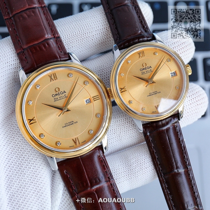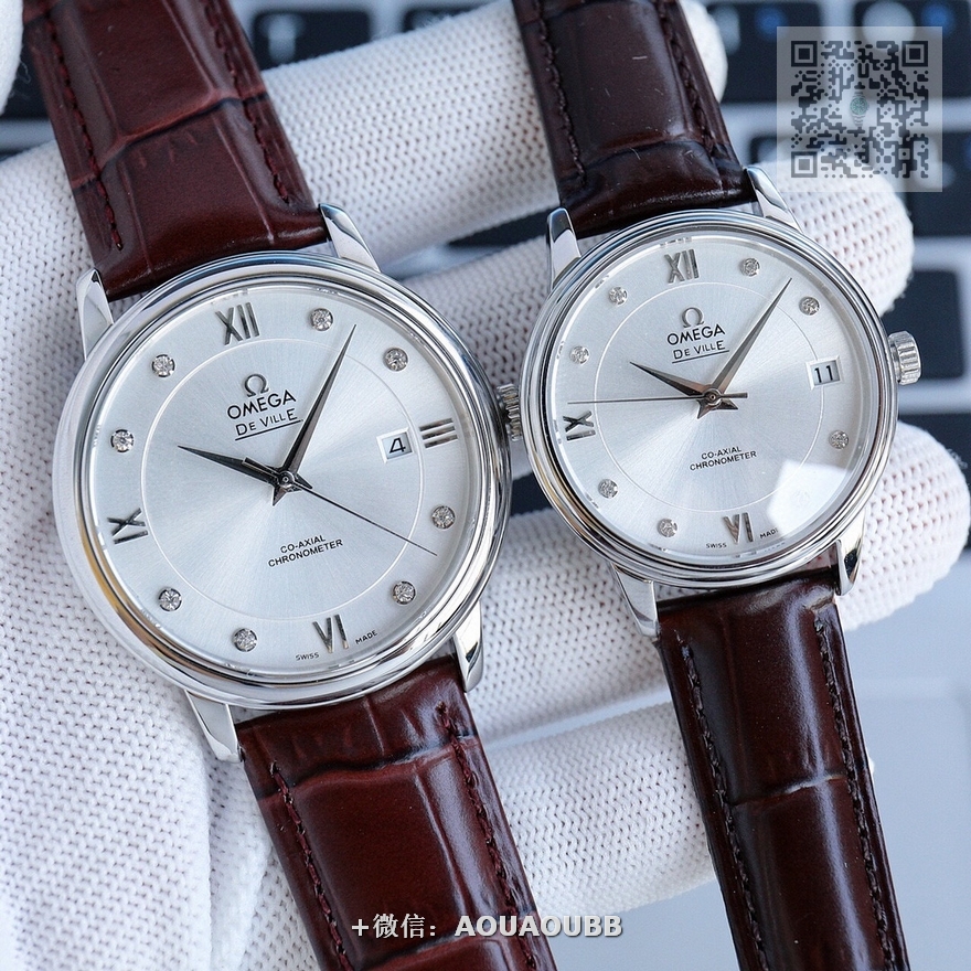【品牌】欧米茄【产品介绍】欧米茄-碟飞系列-情侣对表!台湾厂正品开模,字面与正品一致采用弧面时刻丁,手工镶嵌施华洛水钻玻璃升级为高清拱型双卜蓝宝石玻璃(显示更清晰,防刮花)钢带背面亦同步原装带有激光商品批号!历时9个月多次纠正升级,打造1:1壳型,力求完美!男装直径39.5mm,女装32.7mm!款式采用原装进口西铁城8215机芯,零返修质量款式搭配意大利牛皮让手腕更贴合舒适 表带带身/表扣上面刻有“OMEGA”经典标志,大方富有档次。实物拍摄请认准细节!【款式】男款/女款【尺寸】男款直径39.5mm/女款直径32.7mm【表带】意大利牛皮表带【镜面】蓝宝石镜面【机芯】原装进口8215全自动机械机芯【防水】50米【配件】原装盒,说明书,质保卡,吊牌,香港机打发票【品质检测】保证所有手表实物拍摄,所见即所得 , 手表发货前都会有严格检查测试,确保您收到的手表无质量问题