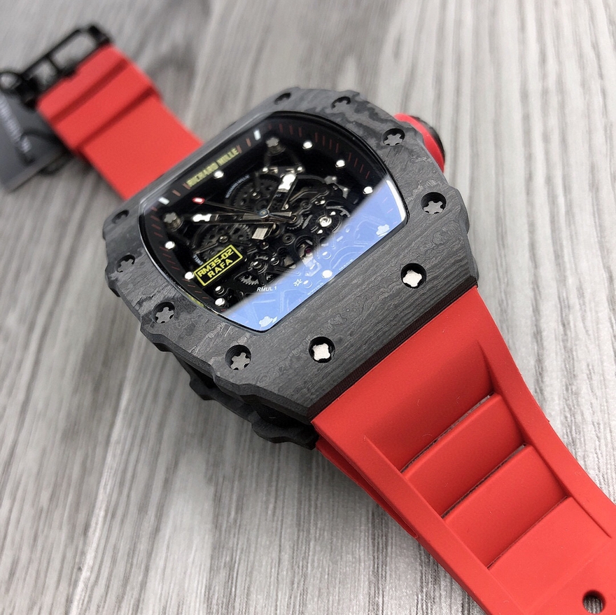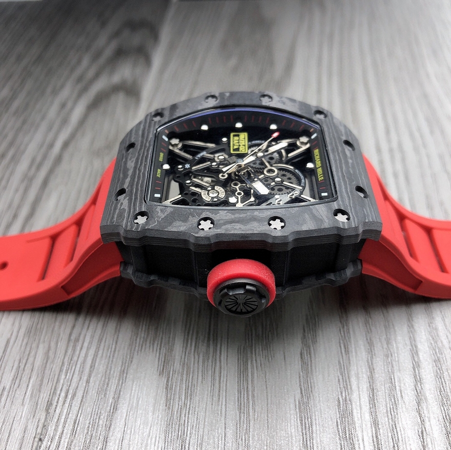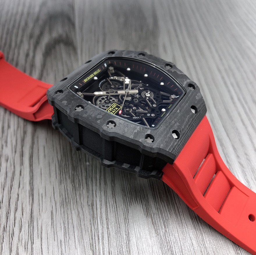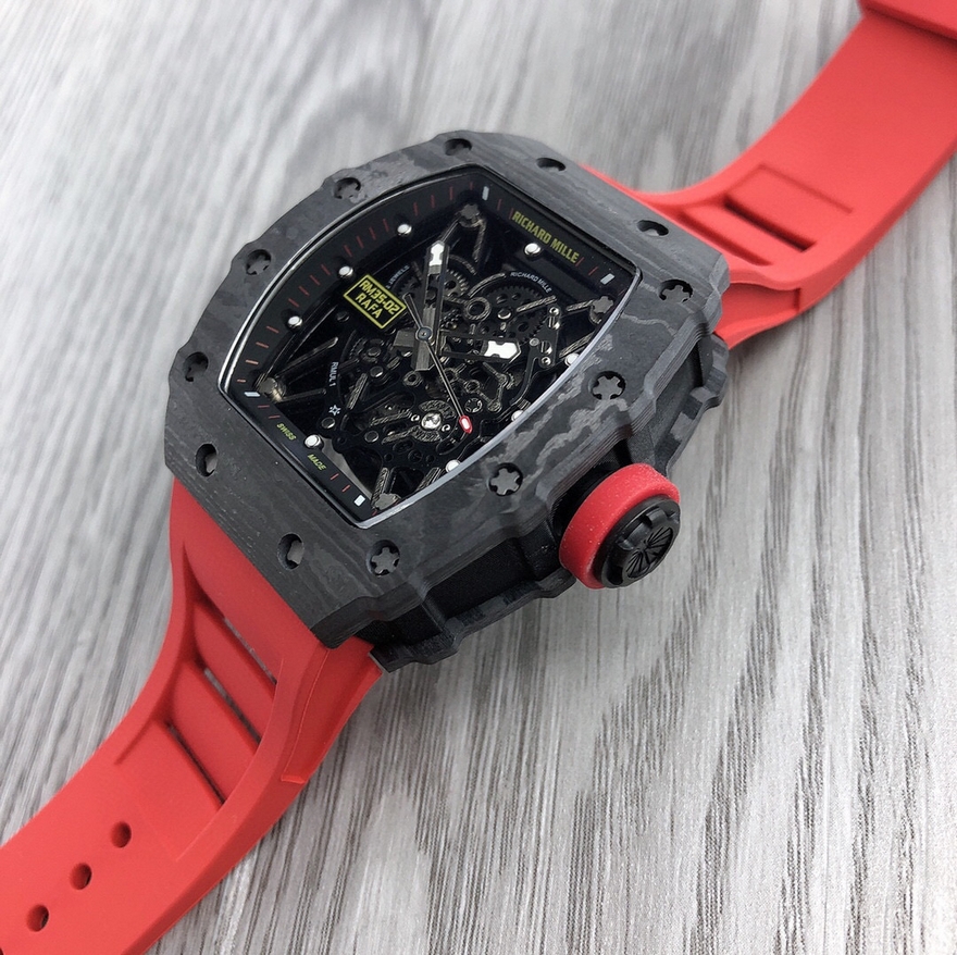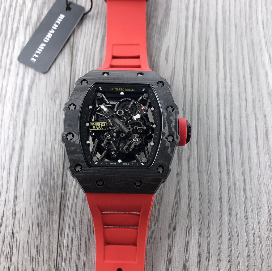 【产品介绍】理查德米.勒RM35-01 全新限量腕表釆用三件式结构,上下表圈和底盖分別以NTPT原装碳纤维纹路和了316精钢打造 ,字面则配备红色表冠衬垫 ,标志和表带相映成趣 ,游戏 精致小配件一层叠一层让表面变的更加层次感  ,搭配原装全自动进口机芯