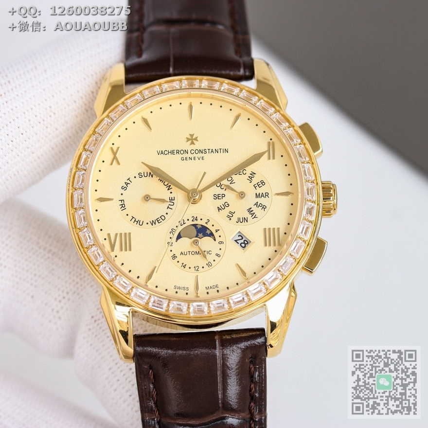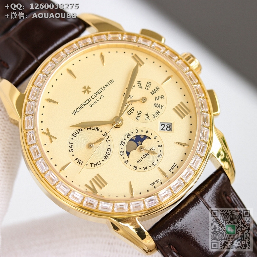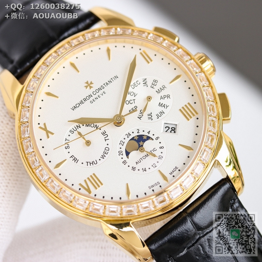品牌】江诗丹顿【产品介绍】MK江诗丹顿Vacheron Constantin复杂功能计时系列,简约儒雅的设计经典永恒,搭载原装进口9100机芯(零故障)汇集日月星辰、日期星期月份,超强防水功能于一身蓝宝石镜面,意大利进口牛皮,原装针扣。秉承瑞士制表工艺,打造完美产品!收藏佳品送礼首选.【款式】男款【尺寸】直径42mm【表带】意大利牛皮表带【镜面】蓝宝石镜面【机芯】 原装进口9100机芯【防水】50米【配件】原装盒,说明书,质保卡,吊牌,香港机打发票【品质检测】保证所有手表实物拍摄,所见即所得 , 手表发货前都会有严格检查测试,确保您收到的手表无质量问题
