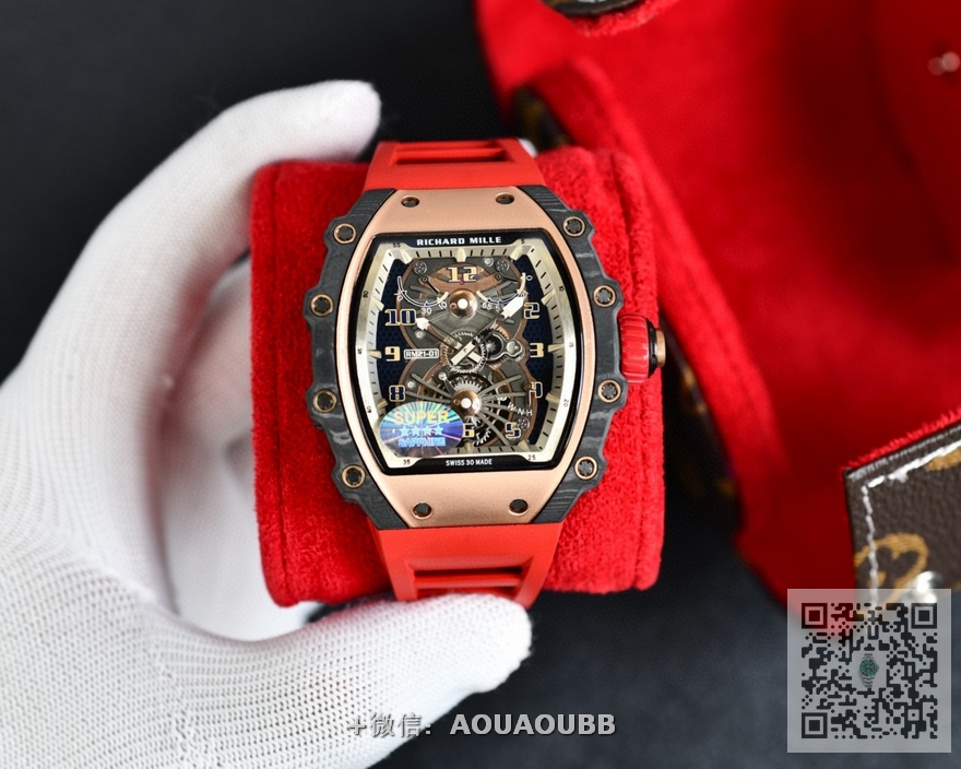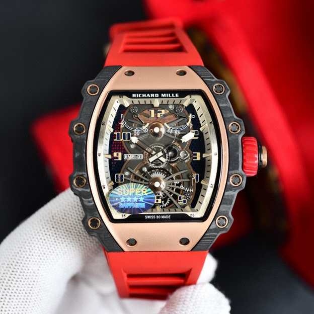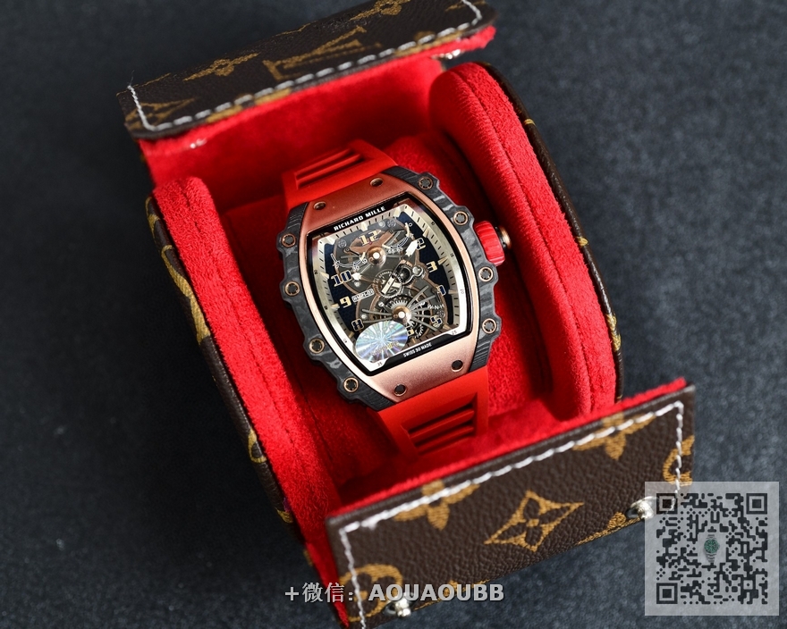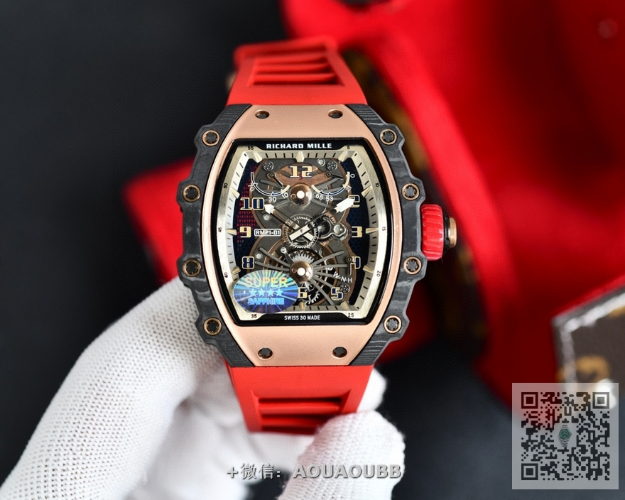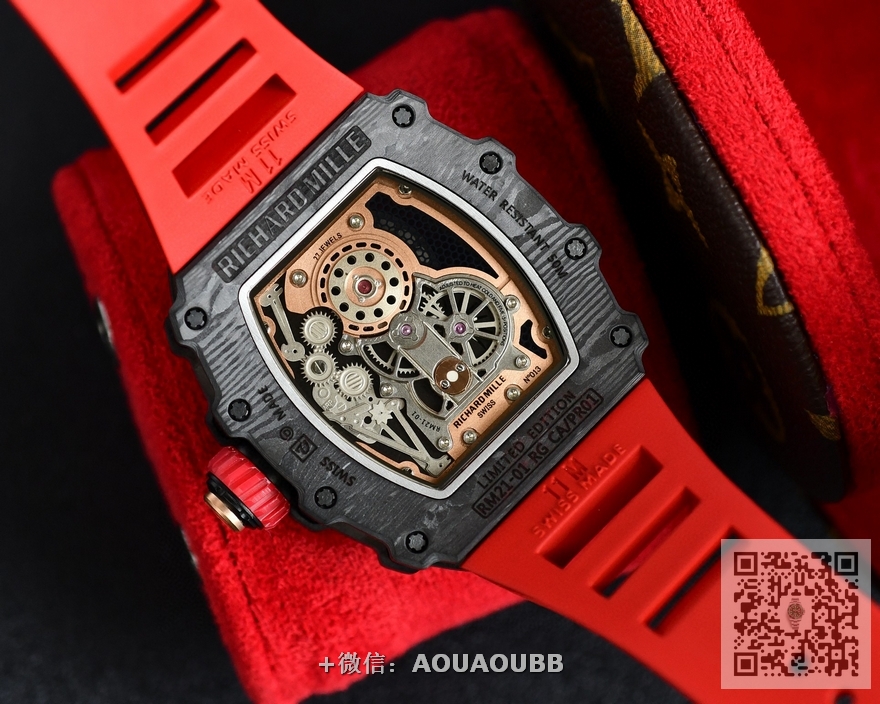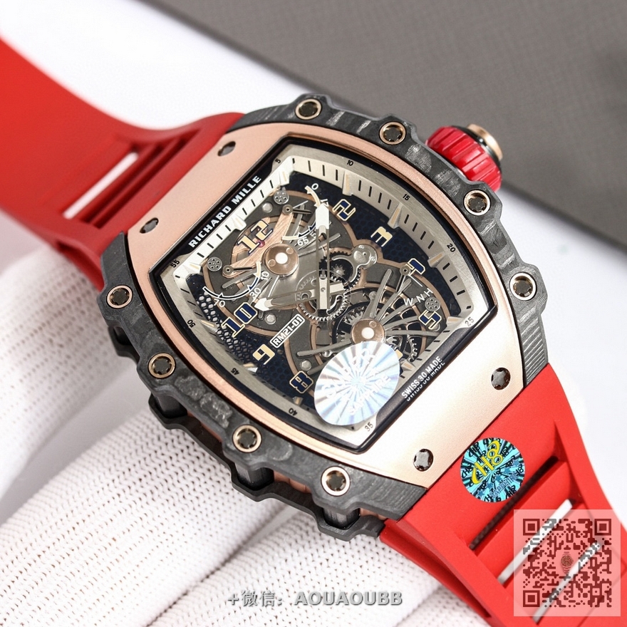 【品牌】理查德米勒【产品介绍】台湾KV理查德米勒 Richard Mille RM21-01系列 搭载全自动进口机械机芯 尺寸40x50x16mm 碳纤维材质打造的表圈和表柱作为架构支撑,进一步加固其精密结构。碳纤维材质这种轻盈又耐用的复合材质,通过使用自动化工艺将数百层碳纤维薄层叠加起来,并让每一层碳纤维呈现45度角交错,然后在高压釜中加热至120度,最后再以微米的精准度进行加工。这种强化结构如同铠甲般为表壳提供绝佳保护,并由20枚花键螺丝牢牢固定。RICHARD MILLE RM 21-01腕表,彷如一枚真正的腕间飞行器,以前沿科技作为澎湃动力,不断打破传统材质对于制表行业的桎梏。装载皇家橡树品质胶带 镂空的设计 充满科技 循规蹈矩?低调一成不变?这从来不是理查德-米勒的世界观。【款式】男款【尺寸】40mmx50mmx16mm【表带】橡胶表带【镜面】蓝宝石镜面【机芯】原装进口精工机芯【防水】50米防水【配件】原装盒,说明书,质保卡,吊牌,香港机打发票【品质检测】保证所有手表实物拍摄,所见即所得 , 手表发货前都会有严格检查测试,确保您收到的手表无质量问题