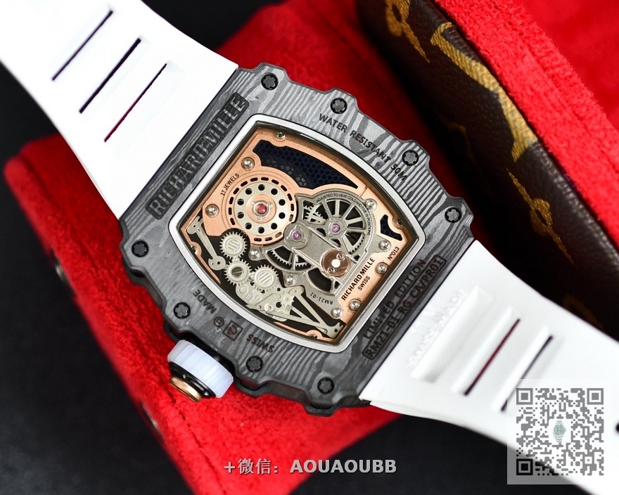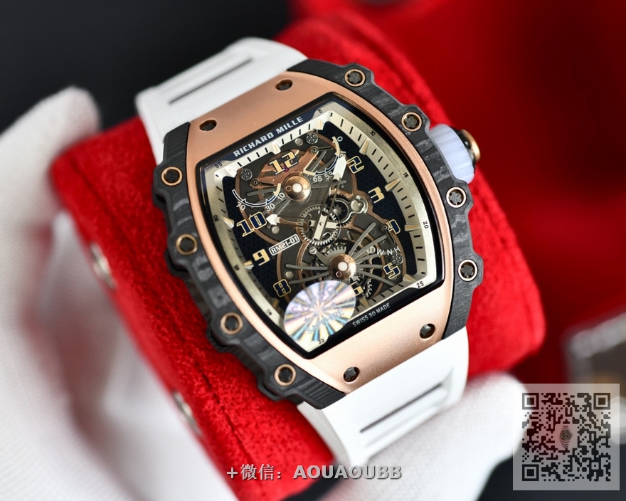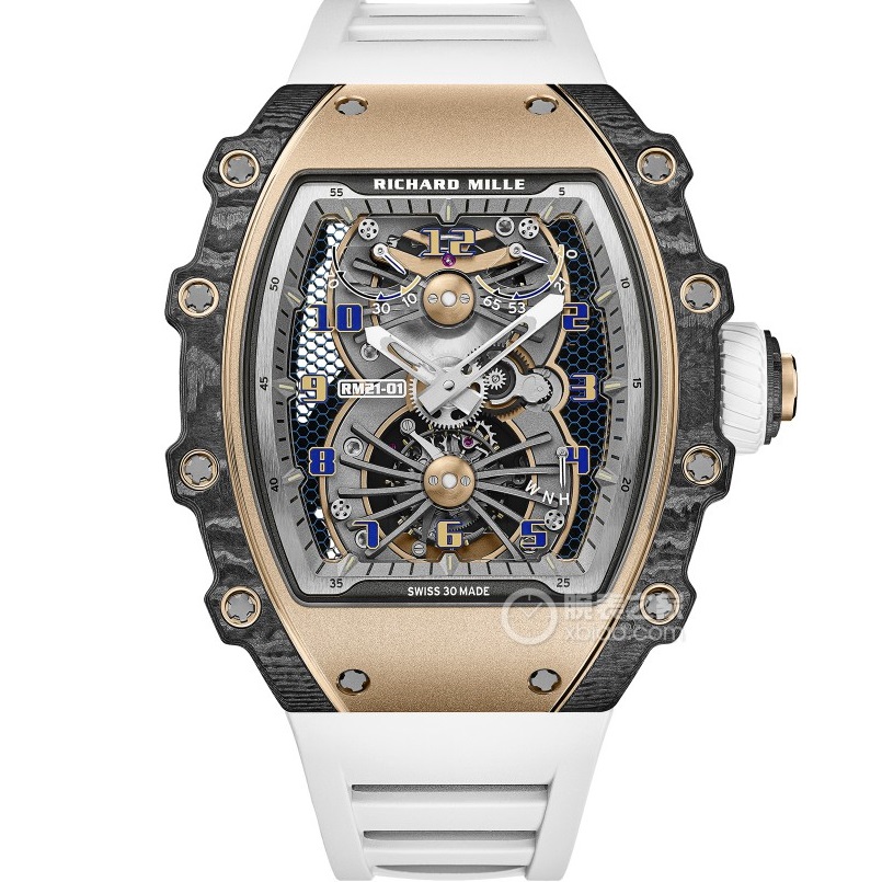 【产品介绍】台湾KV理查德米勒 Richard Mille RM21-01系列 搭载全自动进口机械机芯 尺寸40x50x16mm 碳纤维材质打造的表圈和表柱作为架构支撑,进一步加固其精密结构。碳纤维材质这种轻盈又耐用的复合材质,通过使用自动化工艺将数百层碳纤维薄层叠加起来,并让每一层碳纤维呈现45度角交错,然后在高压釜中加热至120度,最后再以微米的精准度进行加工。这种强化结构如同铠甲般为表壳提供绝佳保护,并由20枚花键螺丝牢牢固定。RICHARD MILLE RM 21-01腕表,彷如一枚真正的腕间飞行器,以前沿科技作为澎湃动力,不断打破传统材质对于制表行业的桎梏。装载皇家橡树品质胶带 镂空的设计 充满科技 循规蹈矩?低调一成不变?这从来不是理查德-米勒的世界观。