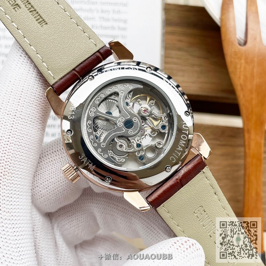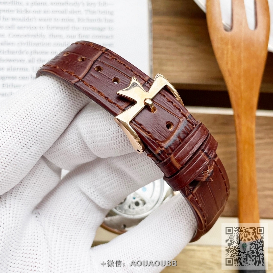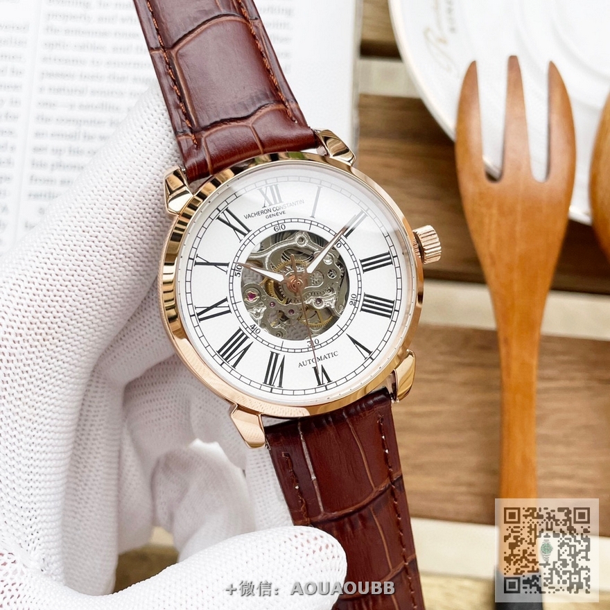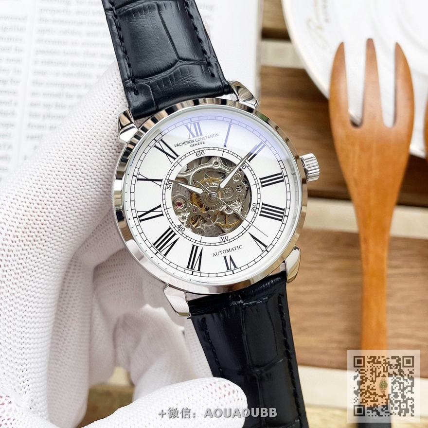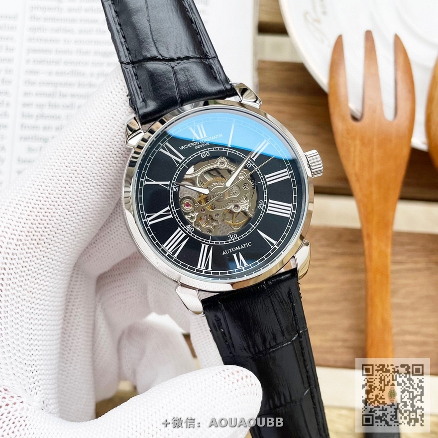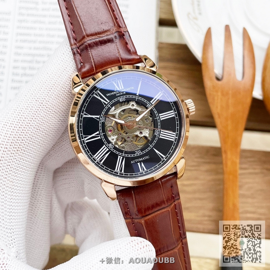 【品牌】江诗丹顿【产品介绍】江斯丹顿VACHERON CONSTANTIN 精品男士腕表,三针全镂空飞轮设计,技艺精湛,独具匠心,尊贵大气,绅士风范。采用全自动机械机芯,顶级316精钢表壳表带,蓝宝石镜面,尺寸41mm【款式】男款【尺寸】直径41mm【表带】意大利牛皮表带【镜面】蓝宝石镜面【机芯】原装进口精工全自动机芯【防水】50米【配件】原装盒,说明书,质保卡,吊牌,香港机打发票【品质检测】保证所有手表实物拍摄,所见即所得 , 手表发货前都会有严格检查测试,确保您收到的手表无质量问题
