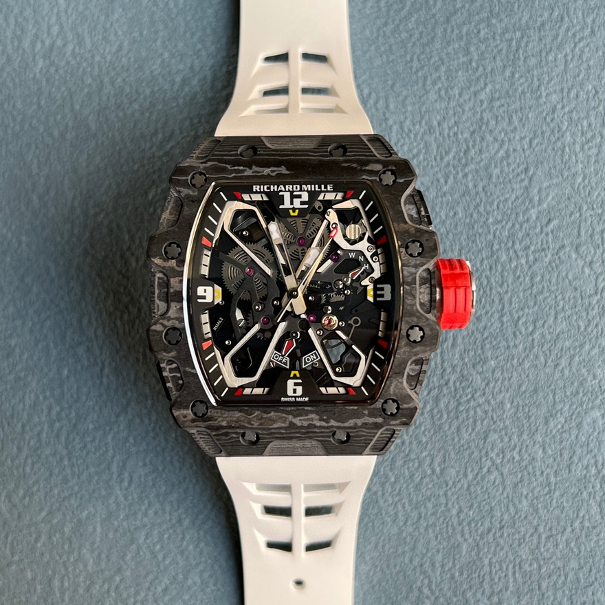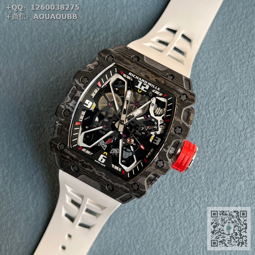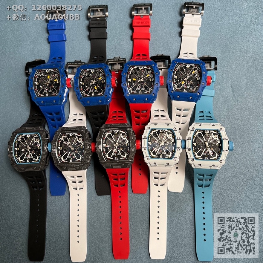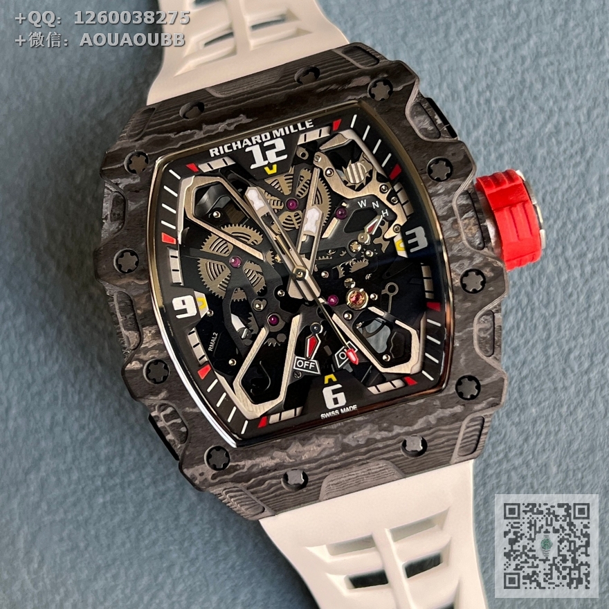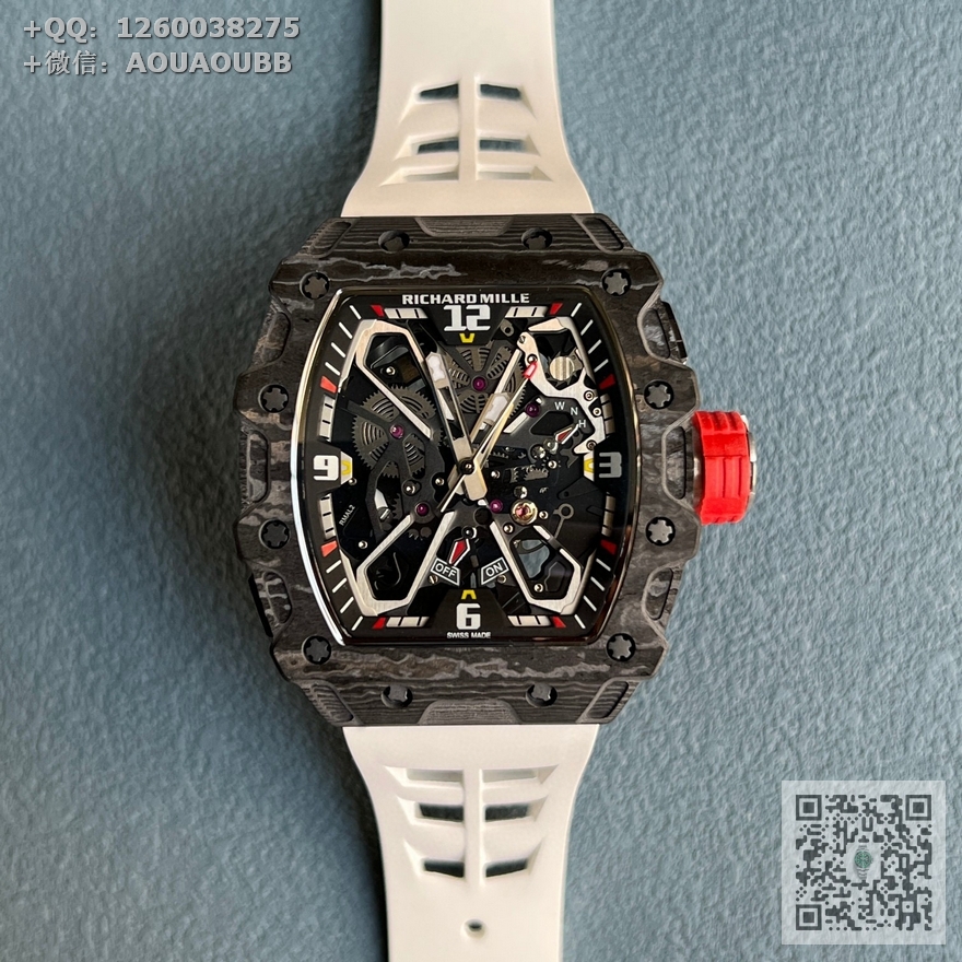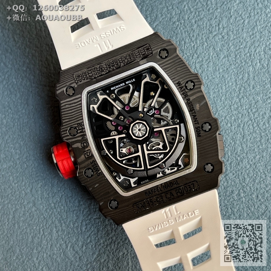 【产品介绍】2023最新爆款!顶级复刻还原正品【 RICHARD MILLE 】理查德米勒 RM35-03 NTPT黑白蓝全碳纤维系列 我们每一只壳全部是手工制作纹路,每一只壳纹路全部不同!!!特点:1:此复刻版表壳和底盖釆用高密度进口NTPT@碳纤维材料 2:碳纤维表壳表底和钛内胆两侧釆用同步CNC加工!使之壳上下与左右二侧毫无缝隙,3:表带釆用马来西亚进口纯橡胶材料制作而成,使之呈现出超韧性及柔软的感觉,市面上最强的RM专用橡胶带,做到能与正品互换鑫的效果4:依原版原理采用钛金属材料作为内胆及釆用最前沿的电火花精切缕空技术!机芯釆用进口seiko自动机芯5:表壳底上的字使用最前沿的超声波精准雕刻技术,使表底整体呈现岀高贵的质感6:玻璃釆用目前市面上最高硬度的蓝宝石水晶玻璃材料!!!