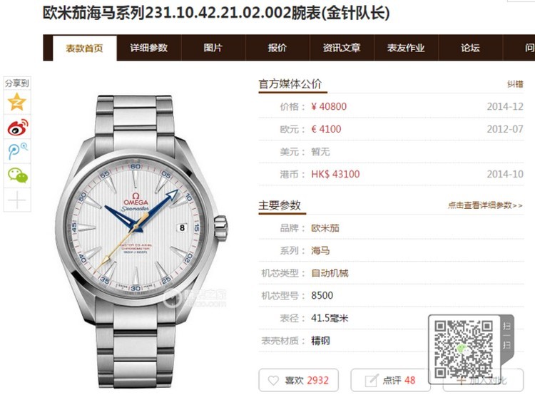 欧米茄(OMEGA)海马系列231.10.42.21.02.002男士机械腕表(金针队长)
