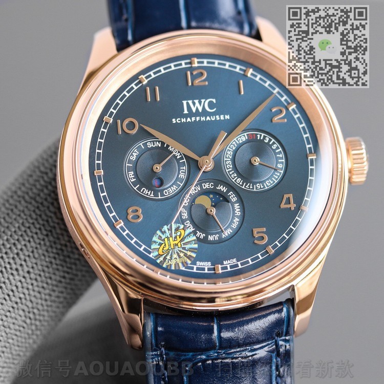万国葡萄牙系列真万年历,复刻界第一支万年历万国,采用进口2892作为基础机芯升级为82650机芯副本,不但实现了万年历大部分功能而且走时稳定,返修率极低,这是复刻市场少有的耐操性复杂功能腕表。