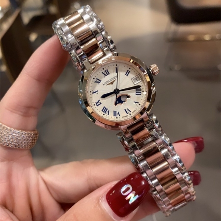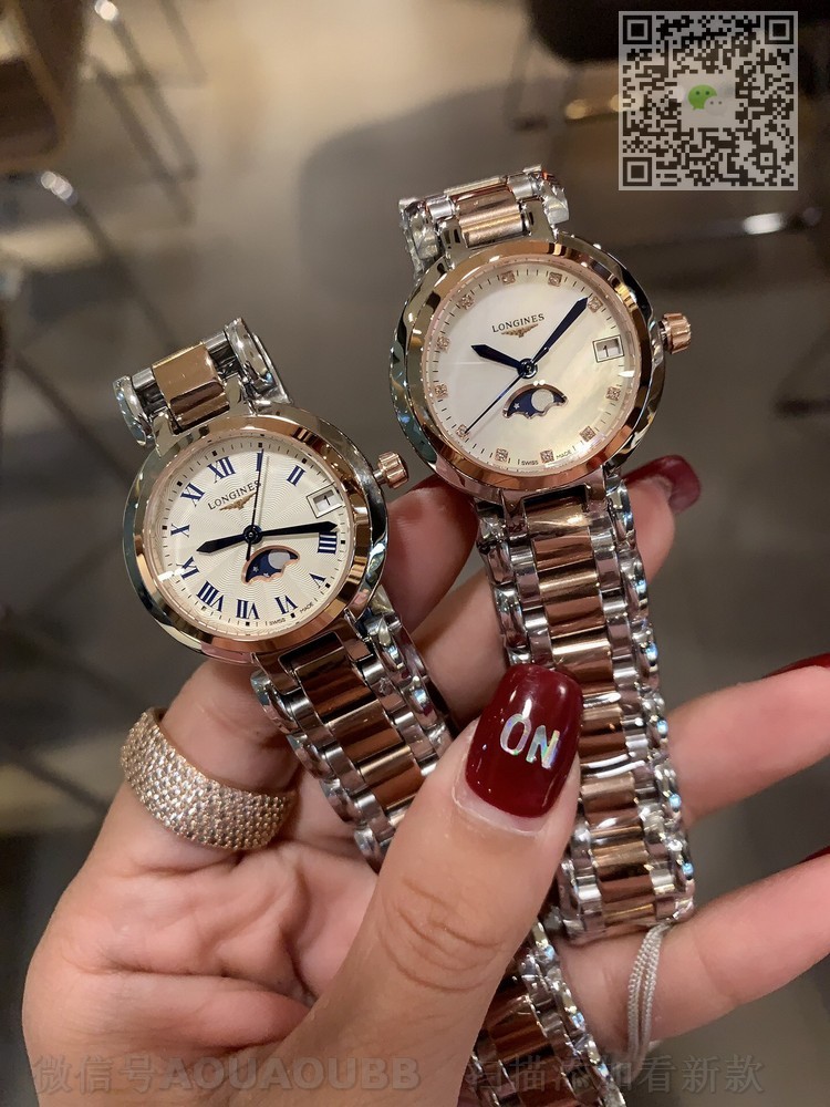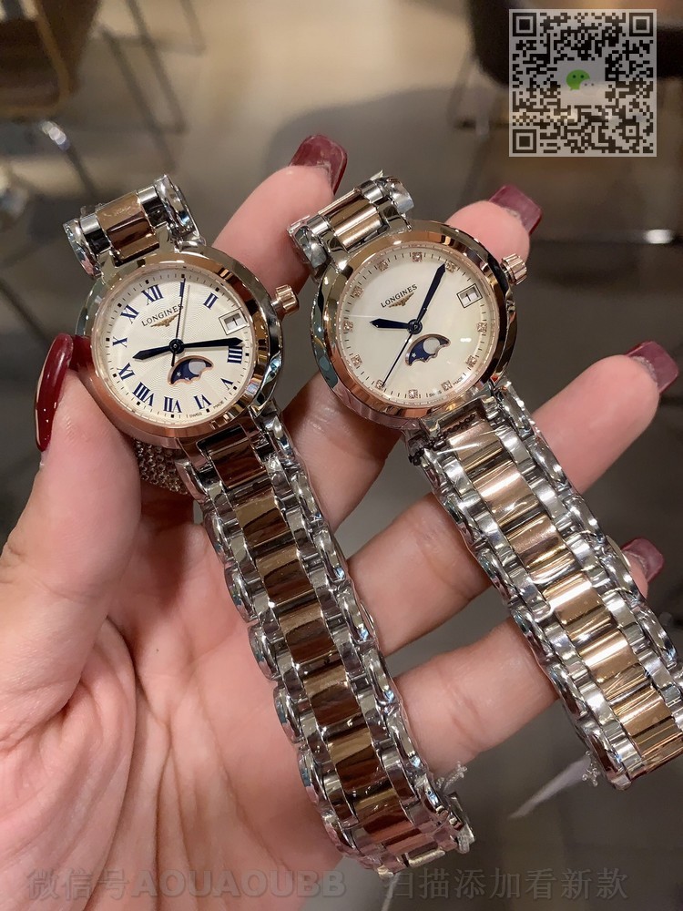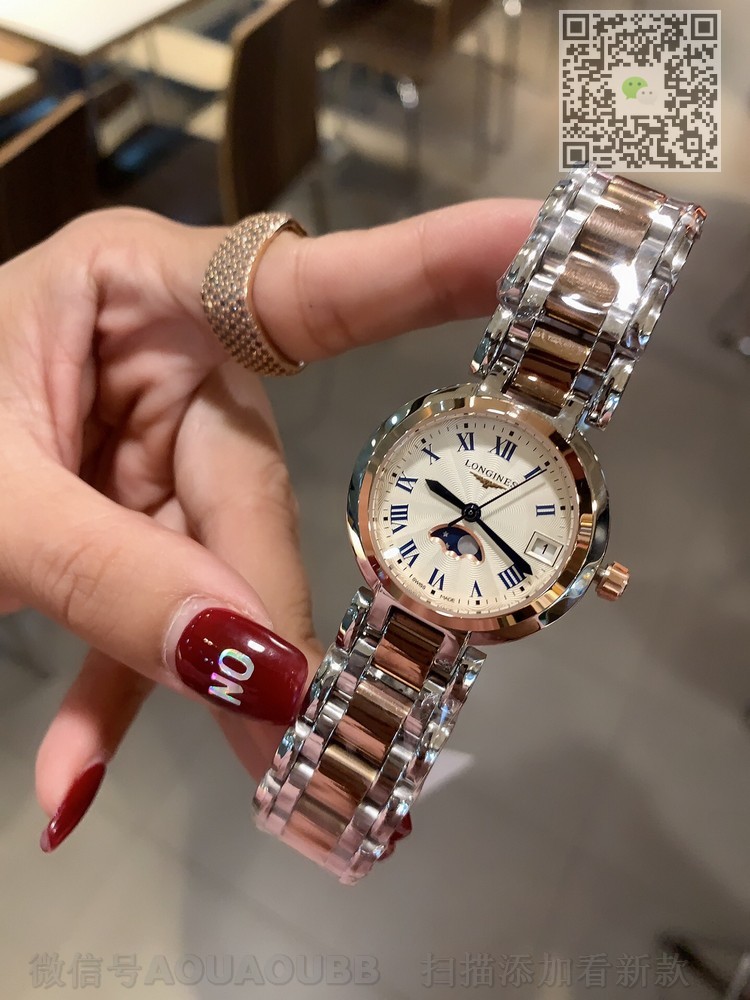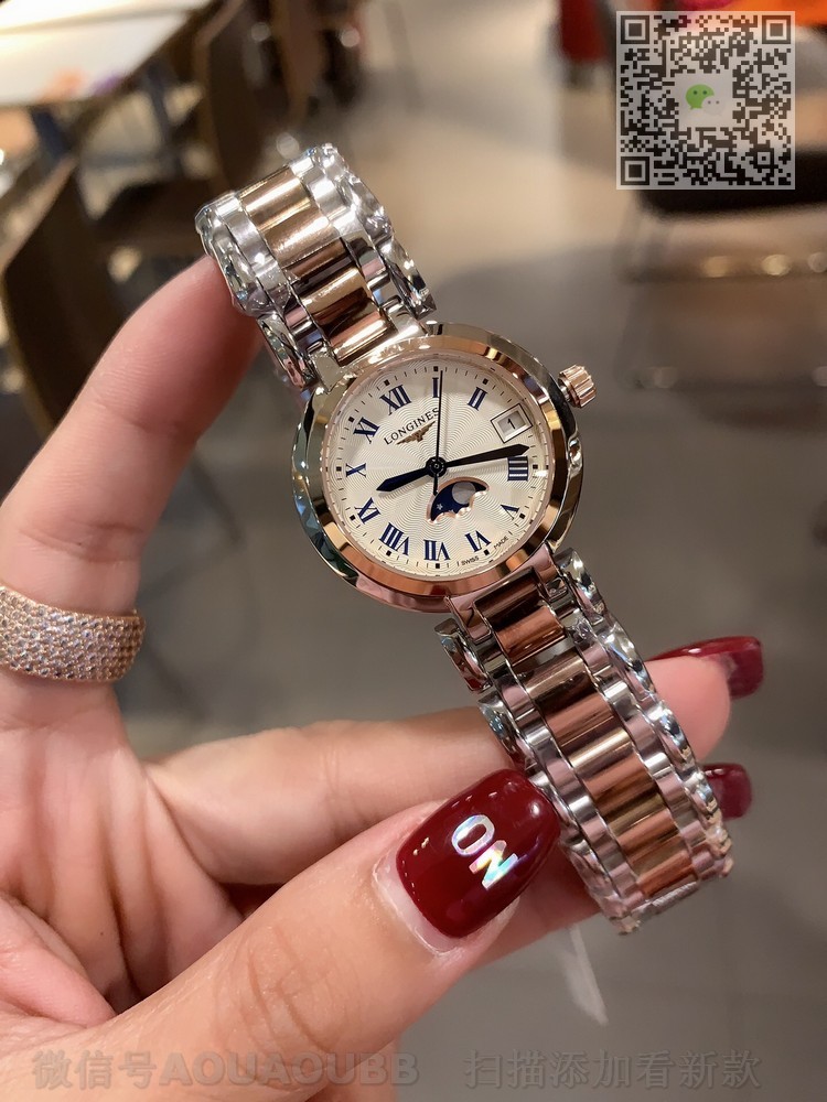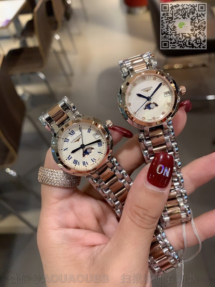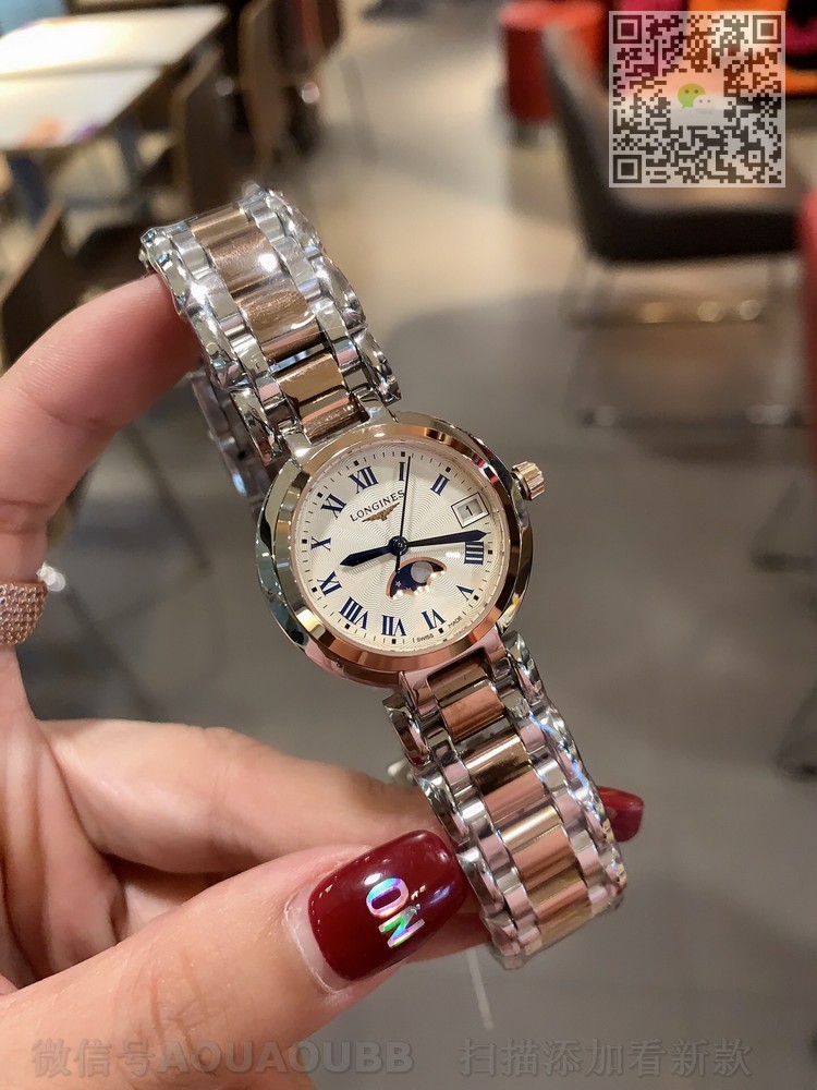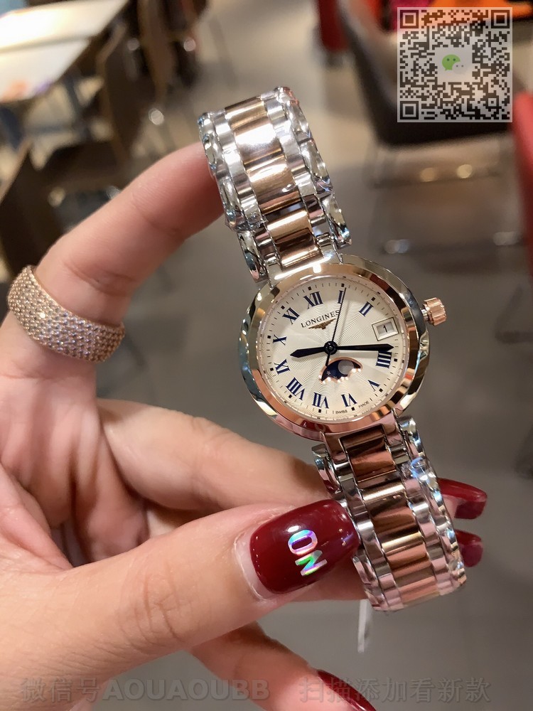 【产品介绍】浪琴-LONGINES 爆款浪琴心月系列石英表手表女简约气质!腕表 1:1品质 超高性价比、真月相机芯:进口石英机芯走时准确玻璃:抗磨损合成双卜蓝宝石(数据同步正品)表壳:316精钢圆形、3件套表壳字面:罗马面、表带:精钢表链搭配原装三折式表扣。