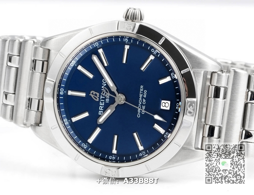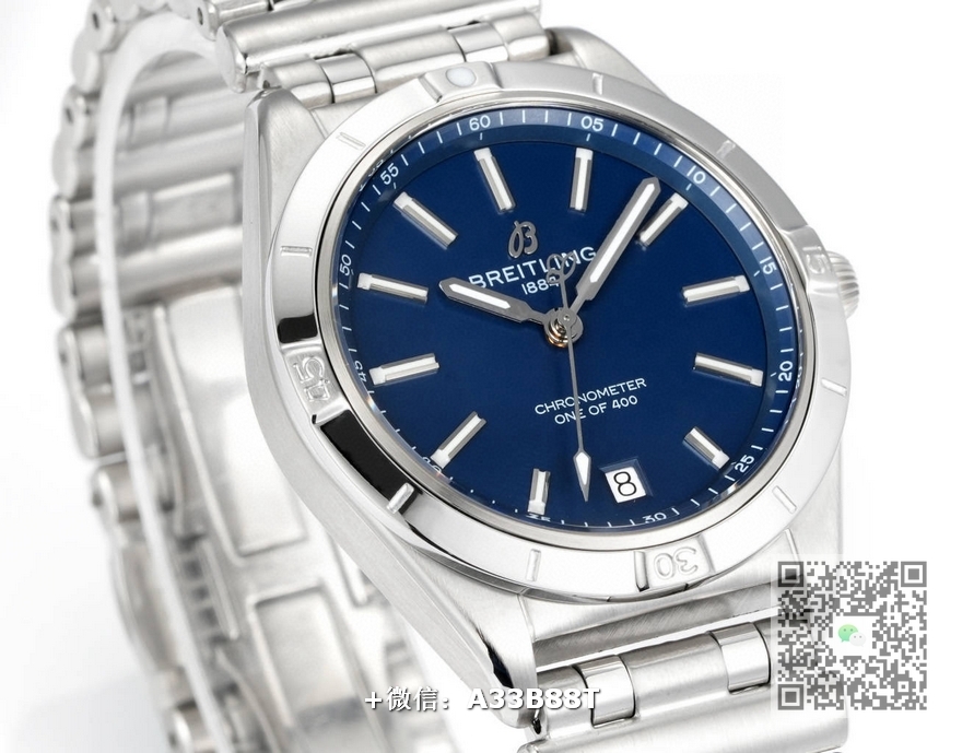腕表搭配的是百年灵标志性蝴蝶扣辊珠精钢表链,表链的设计也和市面上的大多数表链不相同,更显独特,贴合手腕设计!
