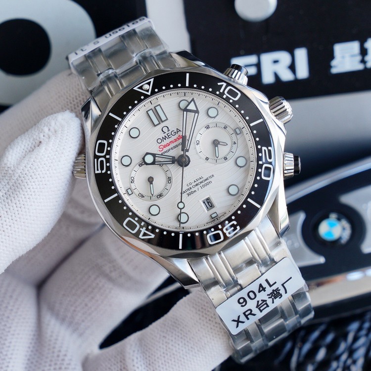 2: 搭载复刻欧米茄9900计时机芯,同正品黑色摆轮,904精钢表壳44毫米 ,天然进口橡胶表带,表带可与原版互换