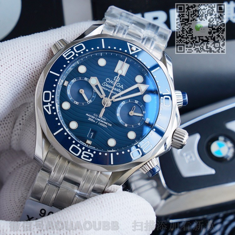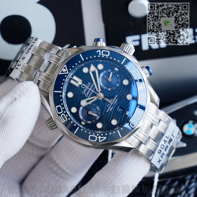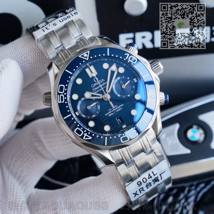 【品牌】欧米茄【产品介绍】【台湾厂新品】欧米茄全新海马系列300计时男士腕表 市面上最高版本的计时腕表1:表壳身拉砂细腻洁白光亮斜边抛光弧度倒角与正品一致2: 搭载复刻欧米茄9900计时机芯,同正品黑色摆轮,904精钢表壳44毫米 ,天然进口橡胶表带,表带可与原版互换3: 陶瓷圈上的刻度和字,采用“白珐琅”工艺,不易变黄 有光泽4:镜面采用进口蓝宝石,硬度高、抗刮损,效果无比通透5:匠心独韵的瓷盘配以18k白金精心打造的小时刻度6:夜光材质为瑞士 Super-lumiNova c3无放射性超级夜光填充而成;欧米茄特有设计,时针跟分针 夜光珠双色夜光7:工艺复杂匠心独运 正品1:1 开模 因为用心,所以专业,你值得拥有。️请认准独家品质【款式】男款【尺寸】直径44mm【表带】精钢表带【镜面】蓝宝石镜面【机芯】复刻正品9900机芯【防水】50米【配件】原装盒,说明书,质保卡,吊牌,香港机打发票【品质检测】保证所有手表实物拍摄,所见即所得 , 手表发货前都会有严格检查测试,确保您收到的手表无质量问题