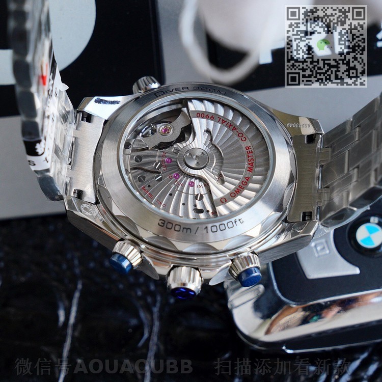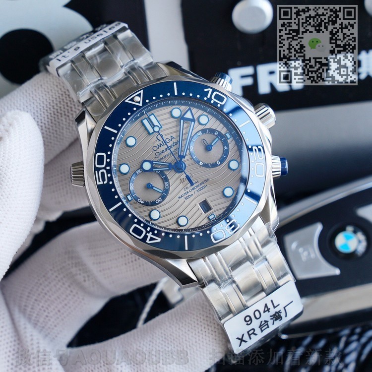 【品牌】欧米茄【产品介绍】【台湾厂新品】欧米茄全新海马系列300计时男士腕表 市面上最高版本的计时腕表1:表壳身拉砂细腻洁白光亮斜边抛光弧度倒角与正品一致2: 搭载复刻欧米茄9900计时机芯,同正品黑色摆轮,904精钢表壳44毫米 ,天然进口橡胶表带,表带可与原版互换3: 陶瓷圈上的刻度和字,采用“白珐琅”工艺,不易变黄 有光泽4:镜面采用进口蓝宝石,硬度高、抗刮损,效果无比通透5:匠心独韵的瓷盘配以18k白金精心打造的小时刻度6:夜光材质为瑞士 Super-lumiNova c3无放射性超级夜光填充而成;欧米茄特有设计,时针跟分针 夜光珠双色夜光7:工艺复杂匠心独运 正品1:1 开模 因为用心,所以专业,你值得拥有。️请认准独家品质【款式】男款【尺寸】直径44mm【表带】精钢表带【镜面】蓝宝石镜面【机芯】复刻正品9900机芯【防水】50米【配件】原装盒,说明书,质保卡,吊牌,香港机打发票【品质检测】保证所有手表实物拍摄,所见即所得 , 手表发货前都会有严格检查测试,确保您收到的手表无质量问题