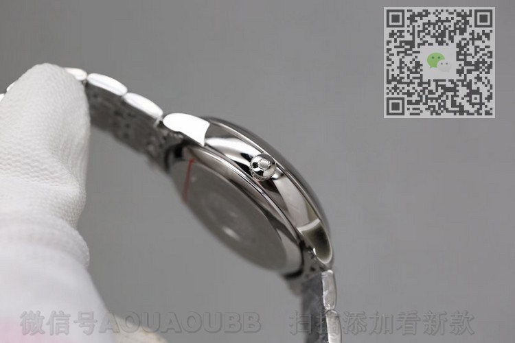 尺寸39.5毫米,厚度10毫米,是超薄的自动腕表,适合广大人群,上手很舒服。表壳分别采用精钢、精钢和黄金色,以及精钢和红金色三种材质打造。表盘均饰有全新“叶形”时针和分针,6点位设有日历窗,日历盘以原装日历1到31个数字一一取样印刷,采用全新印刷工艺,数字整齐不掉漆。腕表表背浮雕有典雅腕表标志性的时间之神Chronos图案,每支表后盖都是不同的编号,独立编码!同专柜一致。