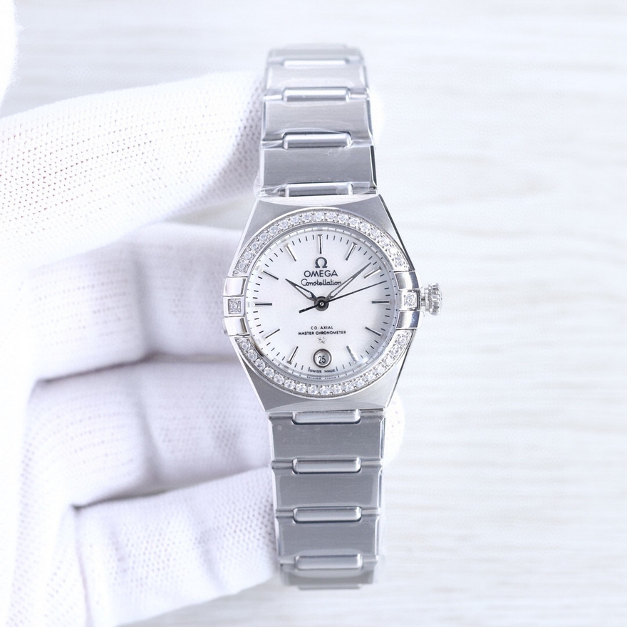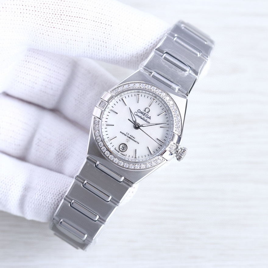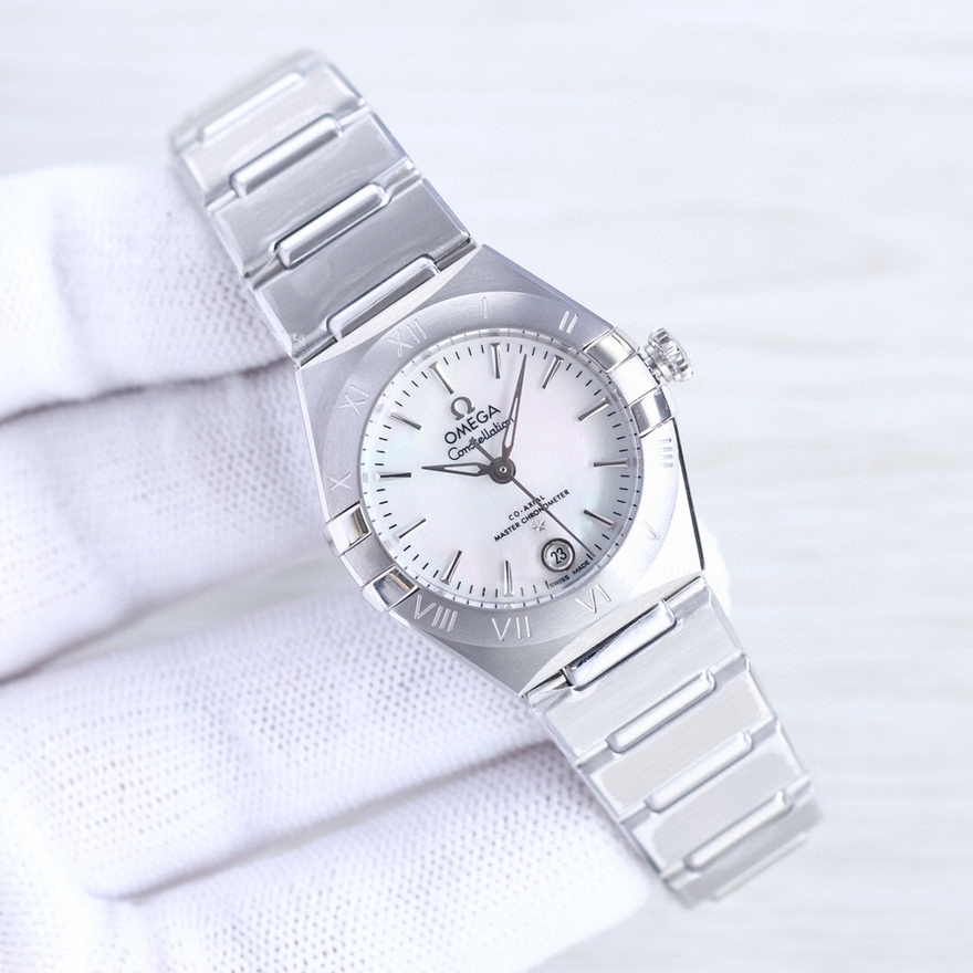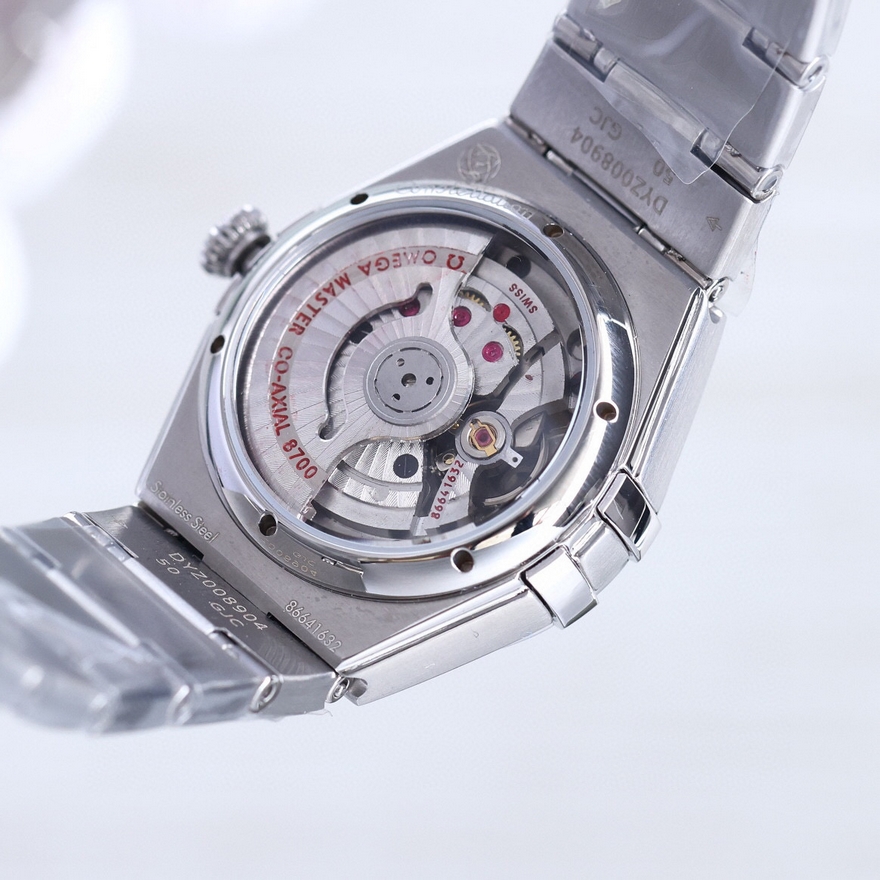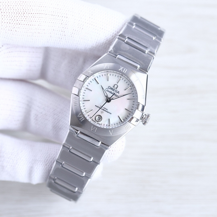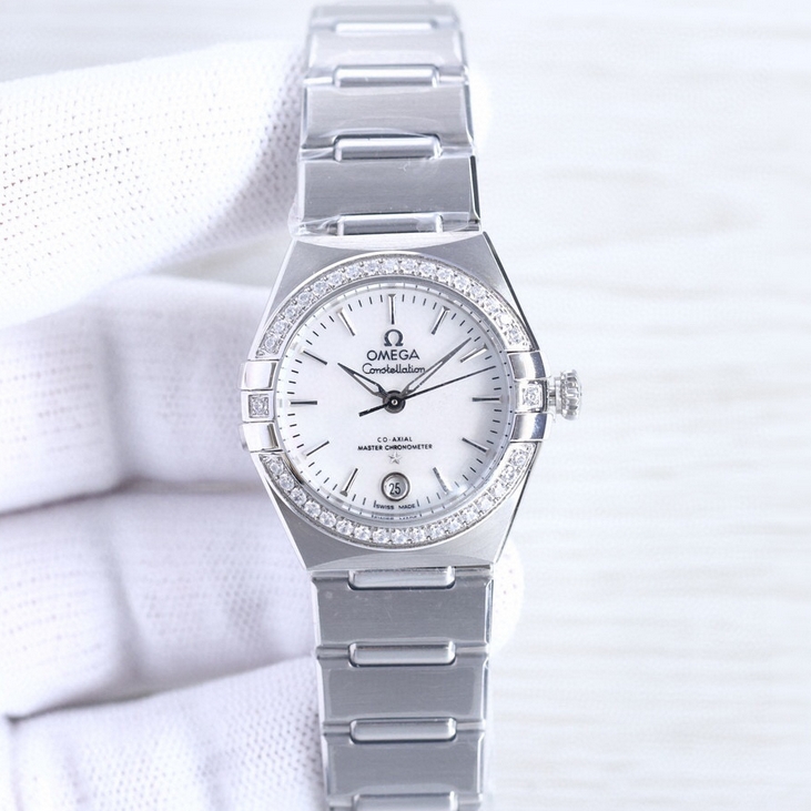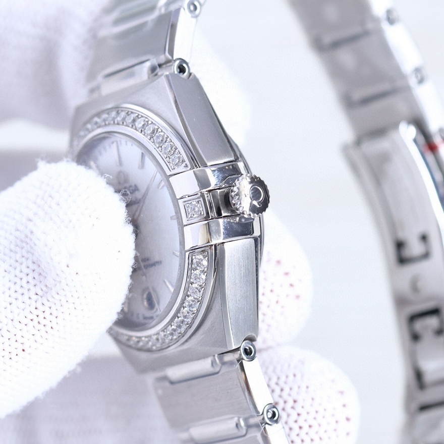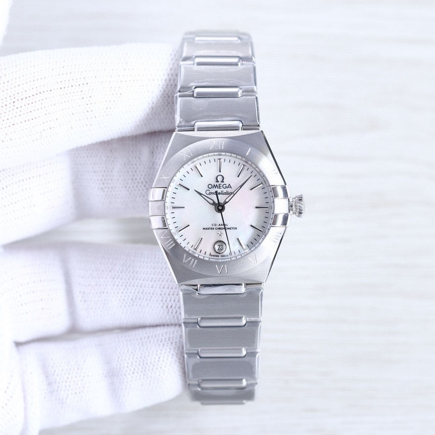 【品牌】欧米茄【产品介绍】引领第五代欧米茄星座(29mm)完美之作!原装拆解,全方位同步官方!更细致入微的美学设计和更人性化细节!搭载8700同轴机芯(极其稳定)具备更高的精准度和避震能力。创新的可调节表扣可以让表链额外延长2毫米,轻松便捷地适应佩戴需求。双卜蓝宝石镜面。正品开模的表壳表带,采用316L精钢CNC打磨,造价远超市面其他版本!托爪更为纤细,抛光后散发的金属光泽与表壳细腻的金属拉丝纹理形成鲜明的对比,凸显出腕表的质感!【款式】女款【尺寸】直径29mm【表带】精钢表带【镜面】蓝宝石镜面【机芯】8700同轴机芯【防水】100米【配件】原装盒,说明书,质保卡,吊牌,香港机打发票【品质检测】保证所有手表实物拍摄,所见即所得 , 手表发货前都会有严格检查测试,确保您收到的手表无质量问题