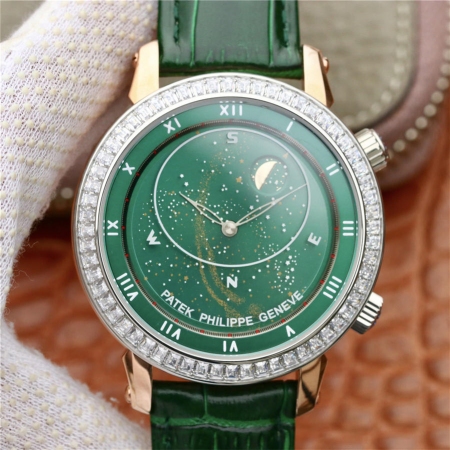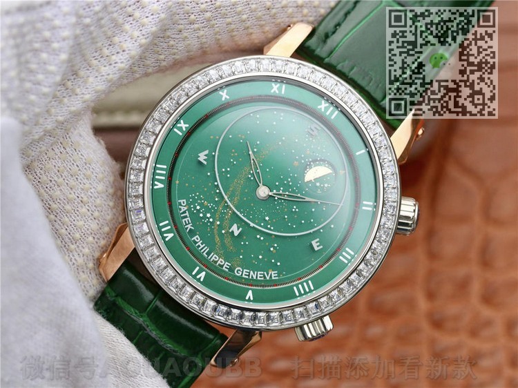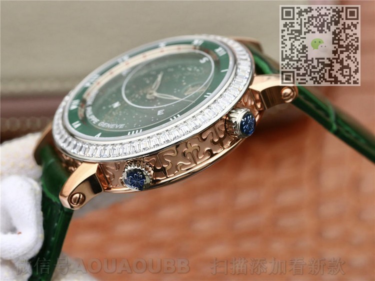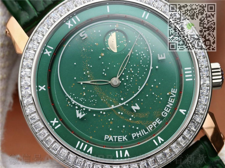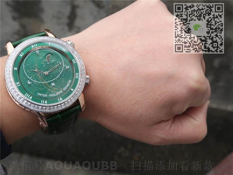 【产品介绍】百达翡丽星空升级终极v4版升级了 ️升级日历的排法和正品一样的顺序️整个手表的厚度更加接近正品的厚度。 你可想象把星空佩戴在腕上吗?这款星空腕表独具特别星象功能,蓝色圆表盘上就能欣赏日内瓦苍穹图,还有金色月球运行轨迹,熬时20个月 采用原装进口9015改cal.240机芯,造而成的珍珠陀和正品一样机心 表盘上的月亮会根据天空的月亮月满圆月蚀弯的情况自动变化 表壳前后玻璃采用先进技术处理让玻璃折射光提高,让表盘看起来更加通透 似乎没有玻璃的感觉 后盖和玻璃也采用和正品一样凹型 打破传统手表后盖和玻璃平行 2字把头调时间,日历,月亮盘 5字位把头调星空盘转动。此表在手别无所求。