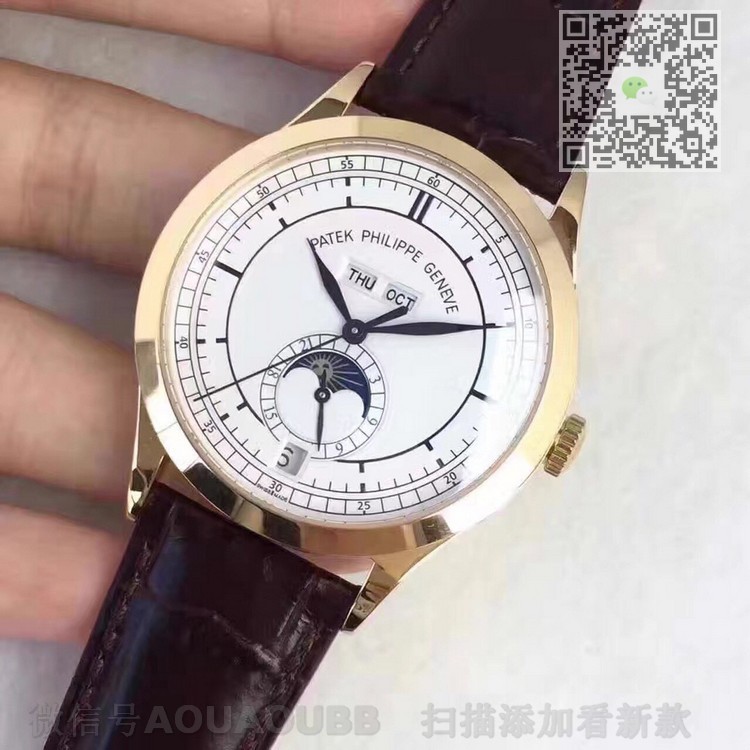 【产品介绍】KM大厂V2版本百达翡丽 复杂功能计时5396系列 全新开模V2版本上新! 1.【字面】升级V1版本字面金质立体时标更接近原版! 2.【月相】从新开模月相盘根据原装数据还原为白色为(白壳)金色为(玫瑰金壳)! 3.【表壳】V2版本表壳抛光处理较V1版本更胜一筹! 4【表带】表带已从新开模,购入原版表带一比一还原,不放过一丝一线,选用意大利正宗牛皮,正面同正品一致为亮色!完美修正V1版本不足与缺陷!5.【内幕】5396系列V2版本即将推出钢带款,匠心打造 敬请期待【款式】男款