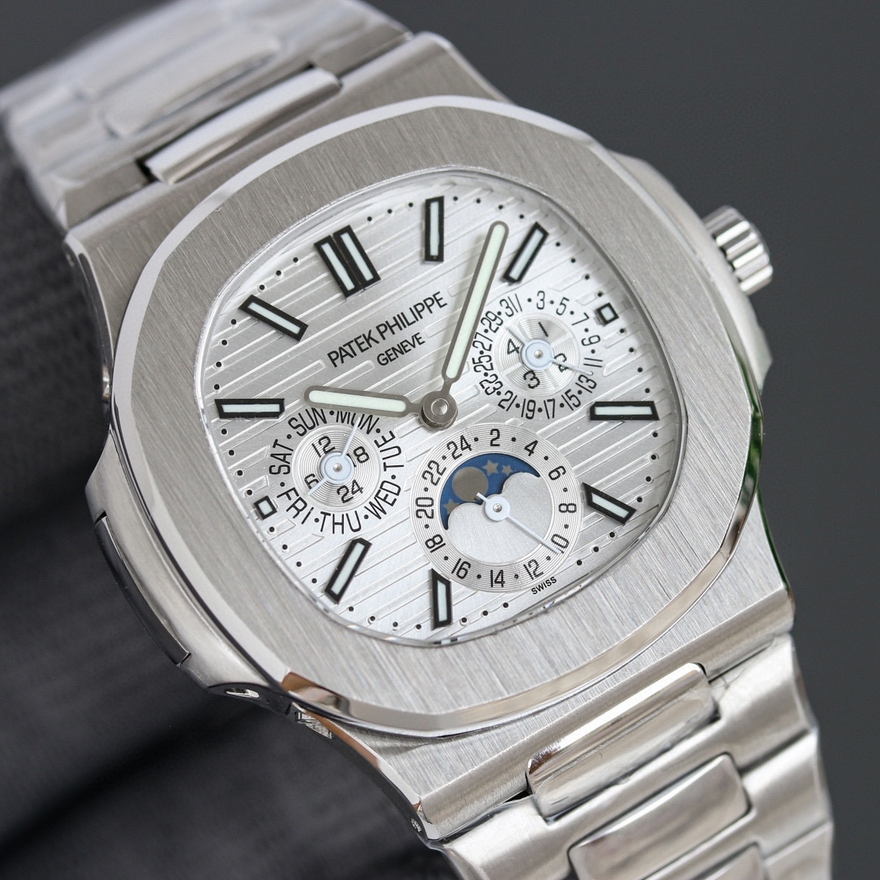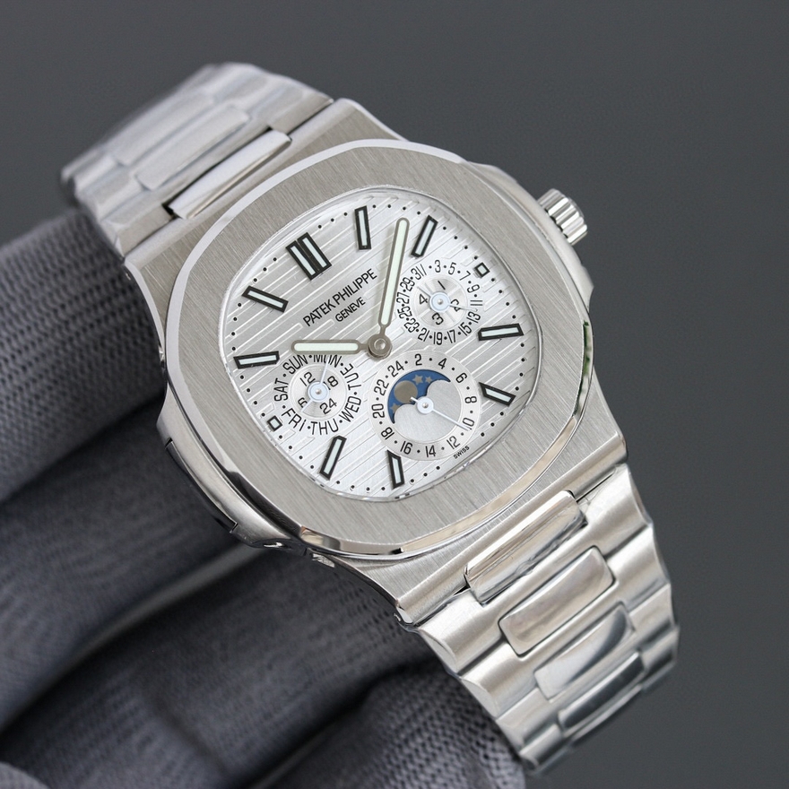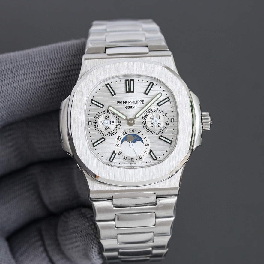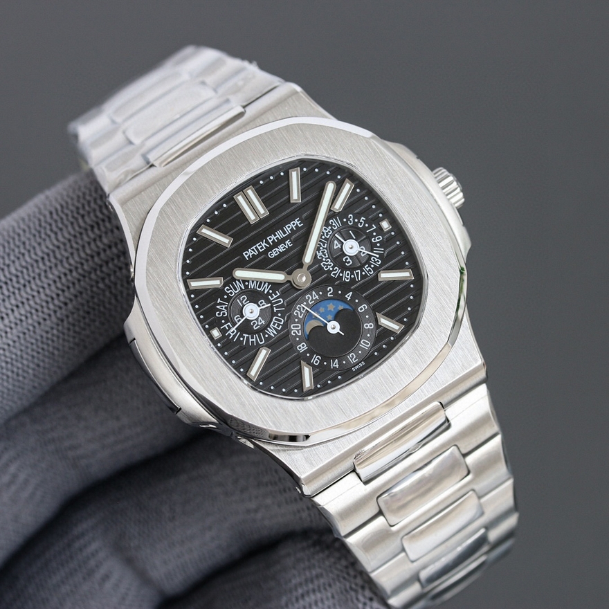 【品牌】百达翡丽【产品介绍】TW新品 百达翡丽 PP 5740/1G-001--超复杂多功能鹦鹉螺重磅登场, 迄今推出的首款Nautilus复杂腕表,以超复杂的工艺技术打造休闲运动腕表。小身板大能量:40毫米 尽揽以下功能∶9点位置处是星期、3点位置处是月份以及6点位置处是24小时与月相显示盘。机芯采用复刻版Cal.324自动上链机芯,在实现外观的逼真前提下,功能一并完美诠释。欧美改装大师独立制表人,倾情参与定制改装表盘颜色,给予独一无二的腕表增添有趣的灵魂!【款式】男款【尺寸】直径40mm【表带】精钢表带【镜面】蓝宝石镜面【机芯】cal.324机芯【防水】50米【配件】原装盒,说明书,质保卡,吊牌,香港机打发票【品质检测】保证所有手表实物拍摄,所见即所得 , 手表发货前都会有严格检查测试,确保您收到的手表无质量问题
