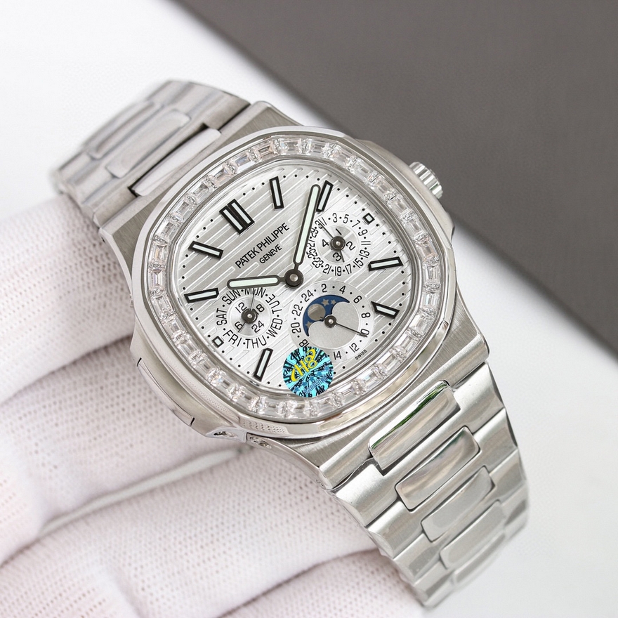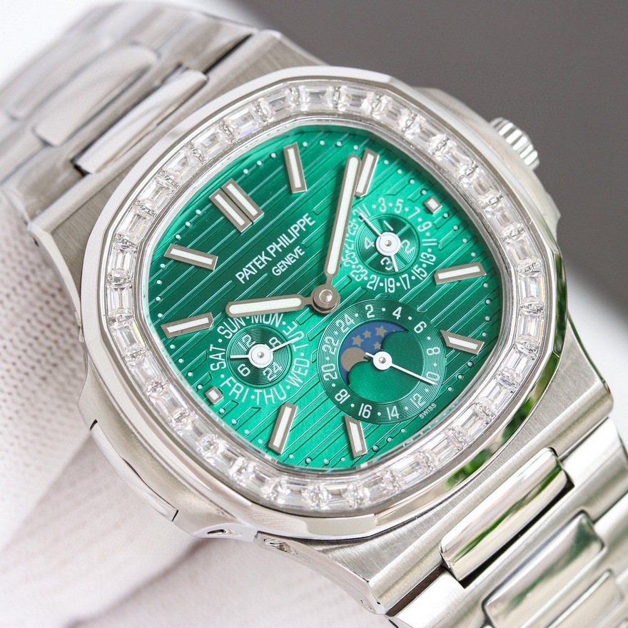 【品牌】百达翡丽【产品介绍】TW新品 百达翡丽 PP 5740/1G-001--超复杂多功能鹦鹉螺重磅登场, 迄今推出的首款Nautilus复杂腕表,以超复杂的工艺技术打造休闲运动腕表。小身板大能量:40毫米 尽揽以下功能∶9点位置处是星期、3点位置处是月份以及6点位置处是24小时与月相显示盘。机芯采用复刻版Cal.324自动上链机芯,在实现外观的逼真前提下,功能一并完美诠释。欧美改装大师独立制表人,倾情参与定制改装表盘颜色,给予独一无二的腕表增添有趣的灵魂!【款式】男款【尺寸】直径40mm【表带】精钢表带【镜面】蓝宝石镜面【机芯】cal.324机芯【防水】50米【配件】原装盒,说明书,质保卡,吊牌,香港机打发票【品质检测】保证所有手表实物拍摄,所见即所得 , 手表发货前都会有严格检查测试,确保您收到的手表无质量问题