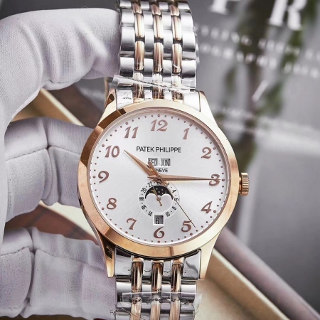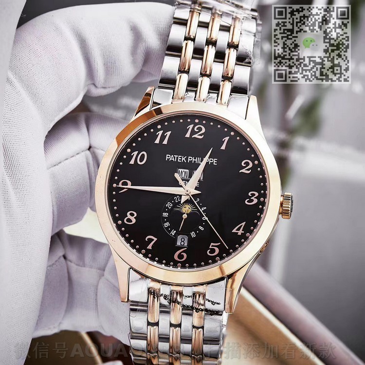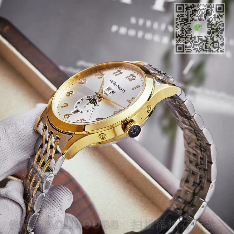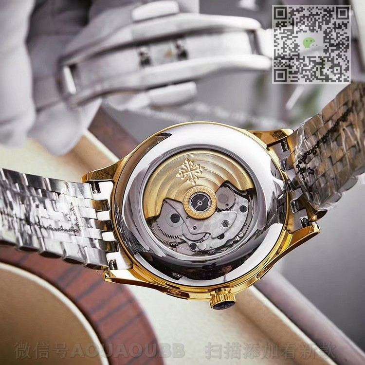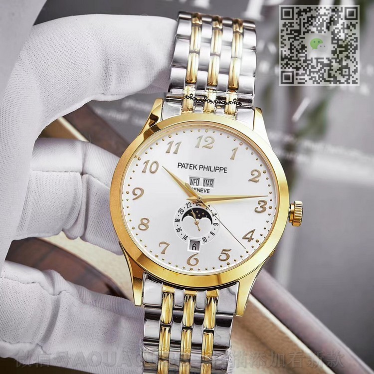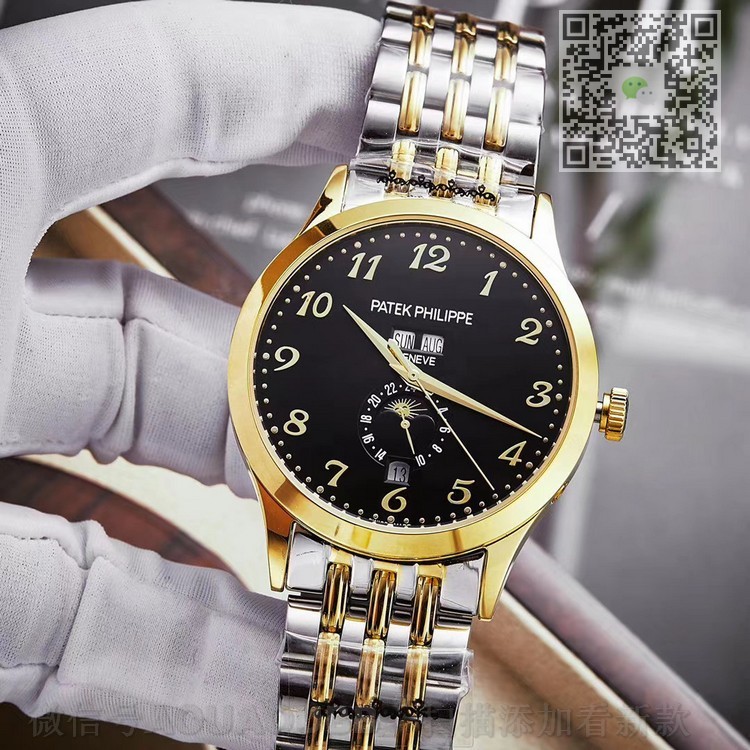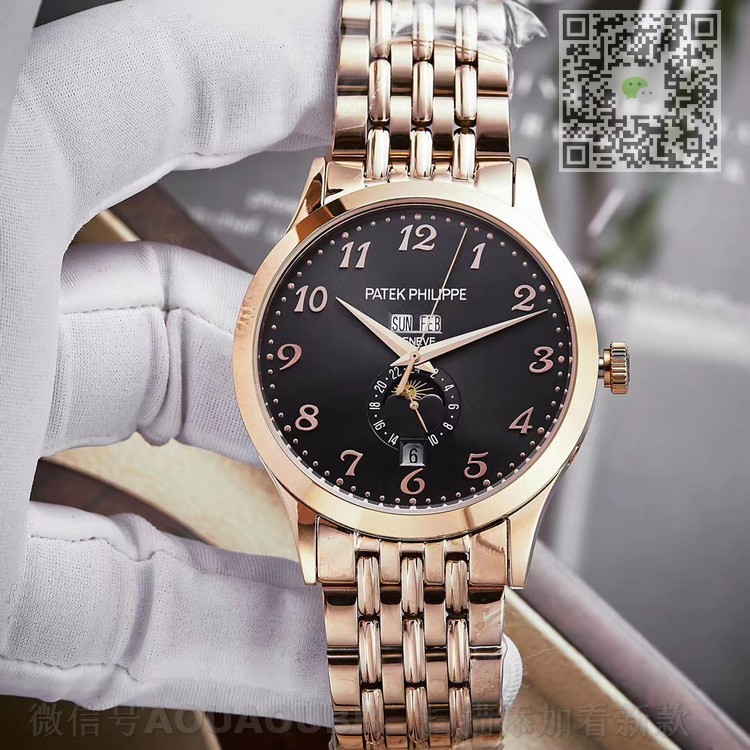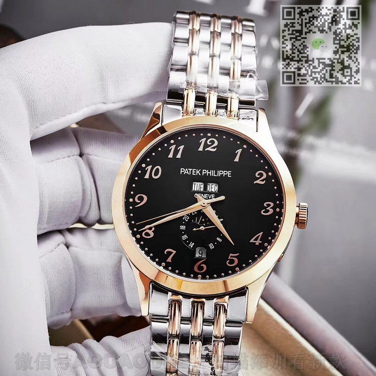 【品牌】百达翡丽【产品介绍】百达翡丽复杂功能计时系列5396R-腕表无需过多的装饰,尽显低调的华丽气【表壳】41mm表径,圆形表壳闪亮的金属光泽流动在表盘流畅的线条上,展现出了腕表出色的设计风格与打磨工艺。复杂功能井井有条的安排令其看上去十分的对称,丝毫不会有突兀之感,通过优美的太妃指针的点缀,无论是指针还是时标的细节修饰,看上去都非常的完美,6点位日历窗的显示清晰明了,让年历功能的读取变得更加方便。【机芯】还原出百达翡丽的提供了时、分、秒、月相显示、日历、星期、月份以及24小时显示的功能,年历腕表还拥有一个不可否认的优点,便是它与正装服饰的搭配,年历表的从容再加上正装的优雅,其所散发的魅力实在是呈倍数增长,必属精品。欢迎品鉴【款式】男款【尺寸】直径41mm【表带】精钢表带【镜面】蓝宝石镜面【机芯】原装进口821a机芯【防水】50米【配件】原装盒,说明书,质保卡,吊牌,香港机打发票【品质检测】保证所有手表实物拍摄,所见即所得 , 手表发货前都会有严格检查测试,确保您收到的手表无质量问题