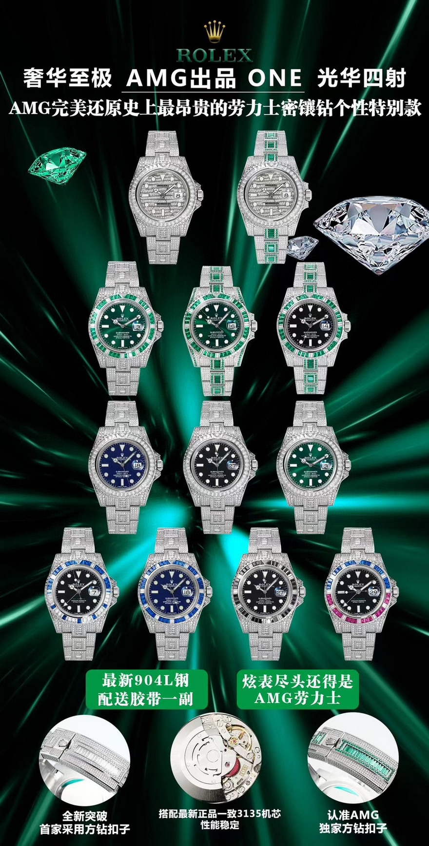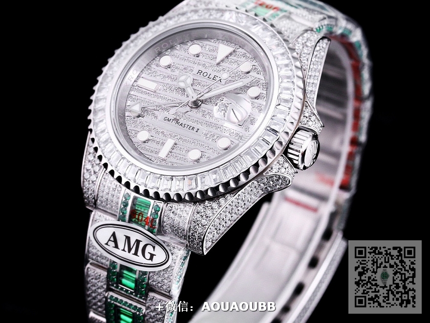 【产品介绍】GTM四针 到货 劳家个性定制特别款奢华至极,AMG挑战复刻新高度——完美还原史上最昂贵的劳力士满天星腕表——劳力士格林尼治型GTM四针II的密镶钻个性特别款——ROLEX116769TBR-74779B
