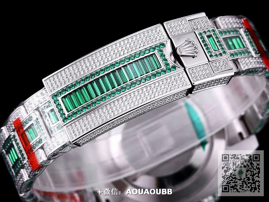 【表壳】腕表尺寸40mm。采用德国最新顶级904L蚝式钢所制。表盘,表圈,表壳,表链都密集镶满最顶级的施华洛世奇美钻。绝对还原原装正品奢华至极的无敌质感。