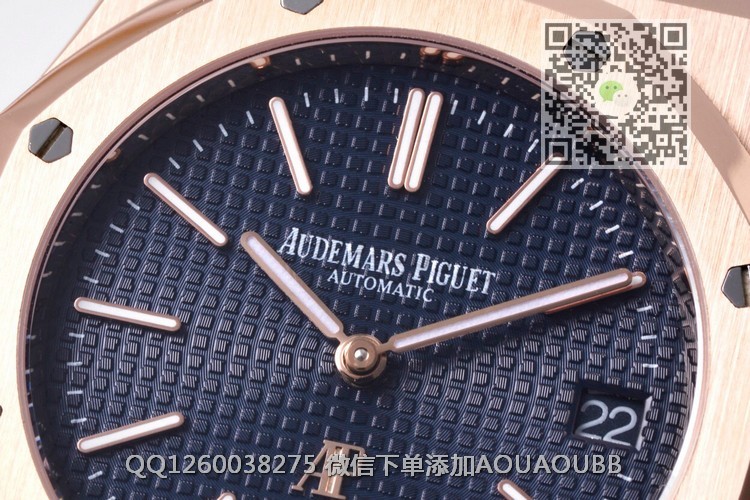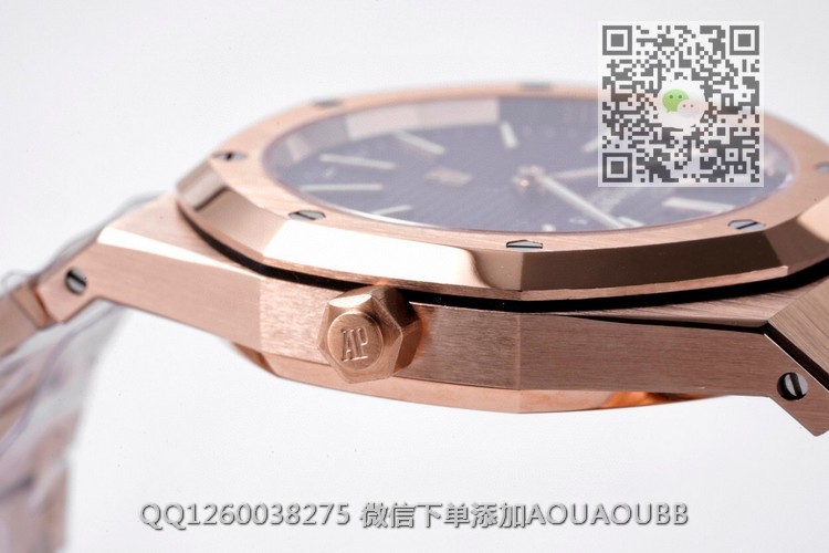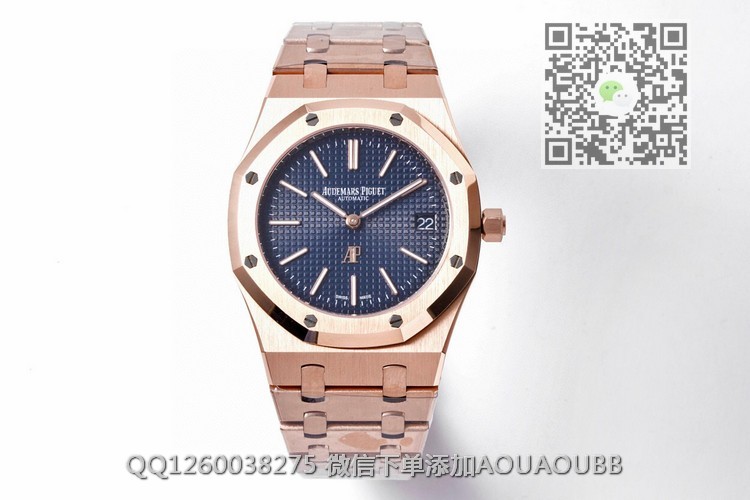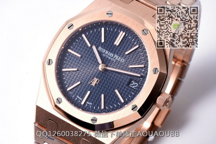 【品牌】爱彼【产品介绍】ZF回馈新老客户,打造最具性价比AP钢王之王——爱彼皇家橡树15202系列腕表39毫米直径的不锈钢表壳,搭配镌刻Petite Tapisserie小型格纹装饰图案的表盘由八枚六角形白金螺丝固定的八角形表圈,六边形表冠与八边形表圈相互呼应,共同彰显男士的阳刚硬朗气质。腕表搭载自主研发Cal.2121机芯,奢华尊贵的超薄机械机芯纳入精钢表壳中与表链连为一体,成为爱彼独特的设计特色。经典的皇家橡树15202还原的细致入微,更以极高的性价比回馈市场。【款式】男款【尺寸】39mm【表带】18K玫瑰金精钢表带【机芯】cal.2121机芯 复刻正品一致机型【镜面】蓝宝石镜面【防水】50米【配件】原装盒,说明书,质保卡,吊牌,香港机打发票【品质检测】保证所有手表实物拍摄,所见即所得 , 手表发货前都会有严格检查测试,确保您收到的手表无质量问题【售后服务】7天包退,十五天包换,三年保修(网站右边是我们微信客服,建议扫描添加,有疑问售后可以方便联系)