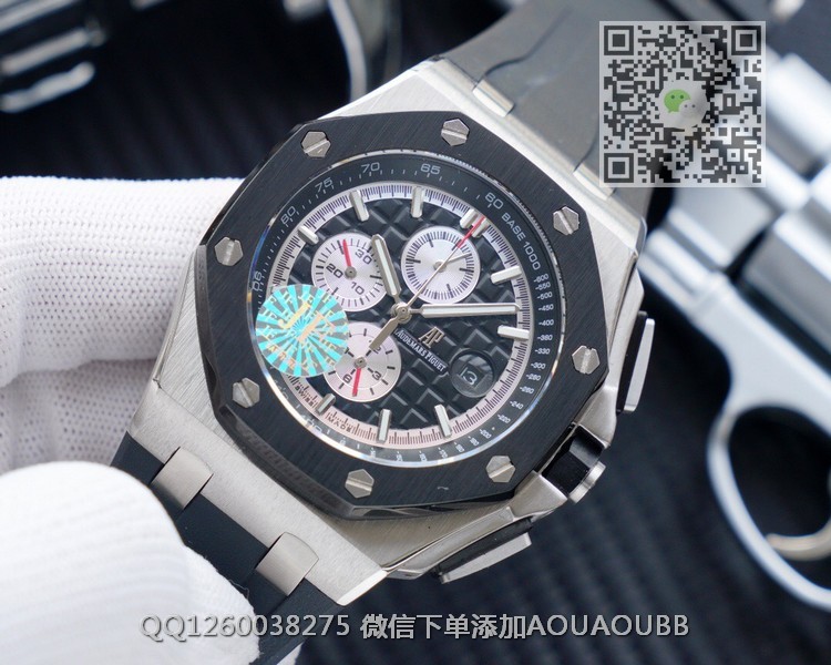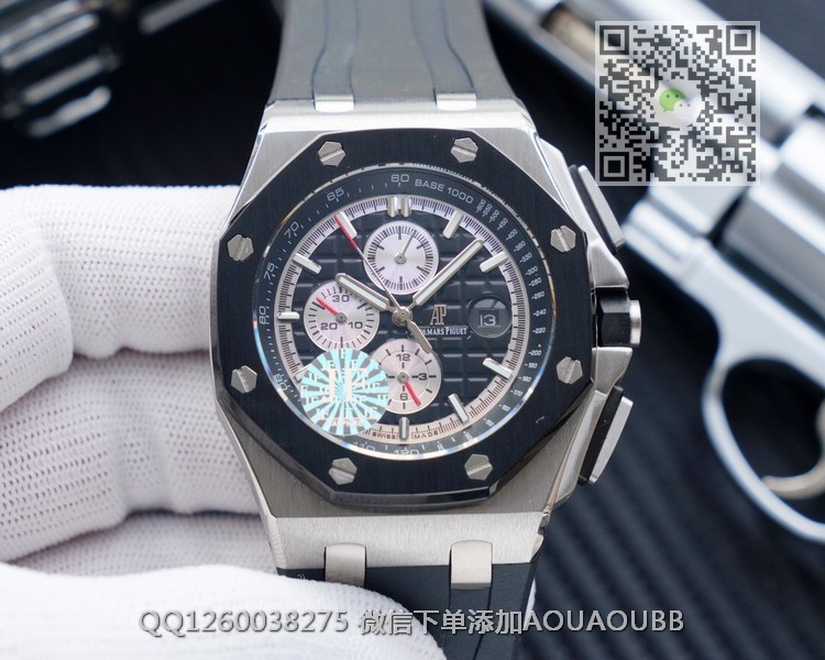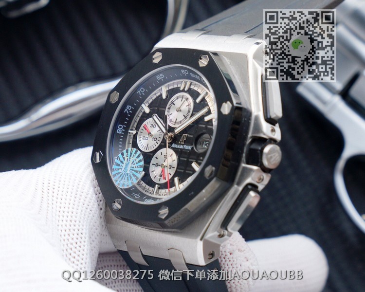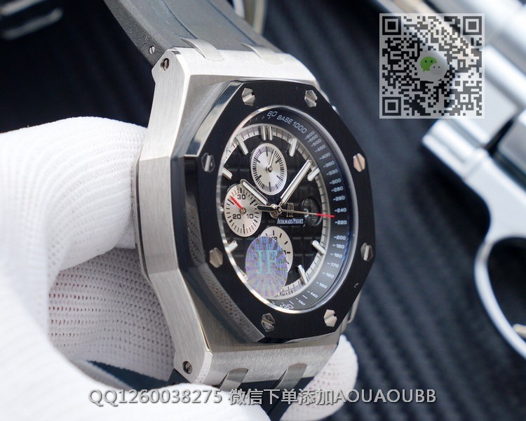 【品牌】爱彼【产品介绍】JF出品爱彼皇家橡树离岸型系列【款式】男款【尺寸】直径44mm【表带】橡胶表带【机芯】复刻正品cal.3126全自动机械机芯【防水】50米【配件】原装盒,说明书,质保卡,吊牌,香港机打发票【品质检测】保证所有手表实物拍摄,所见即所得 , 手表发货前都会有严格检查测试,确保您收到的手表无质量问题【售后服务】7天包退,十五天包换,三年保修(网站右边是我们微信客服,建议扫描添加,有疑问售后可以方便联系)