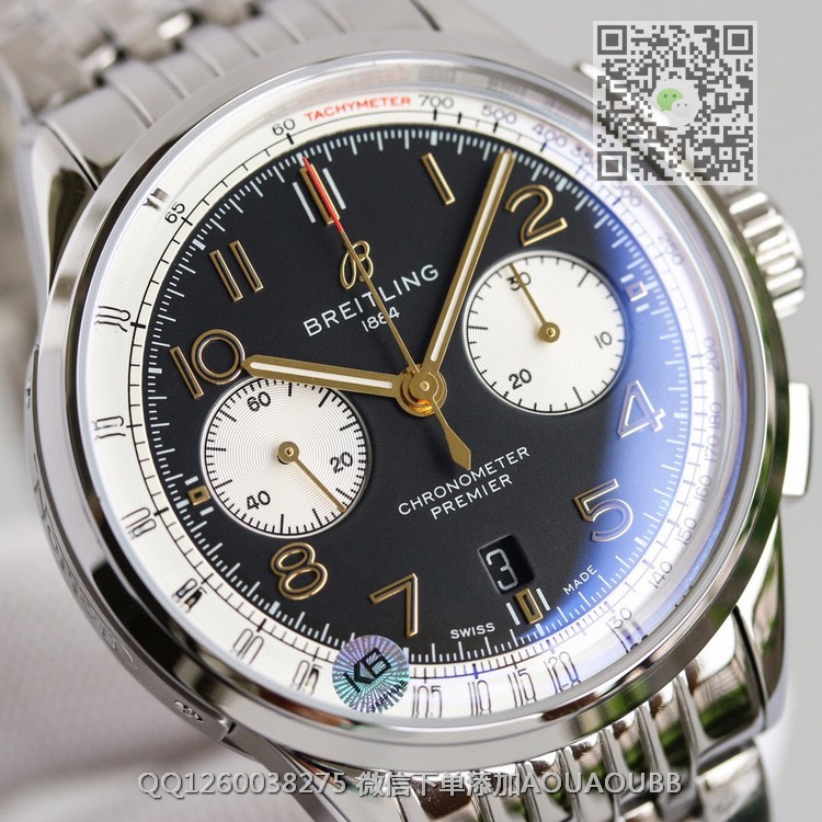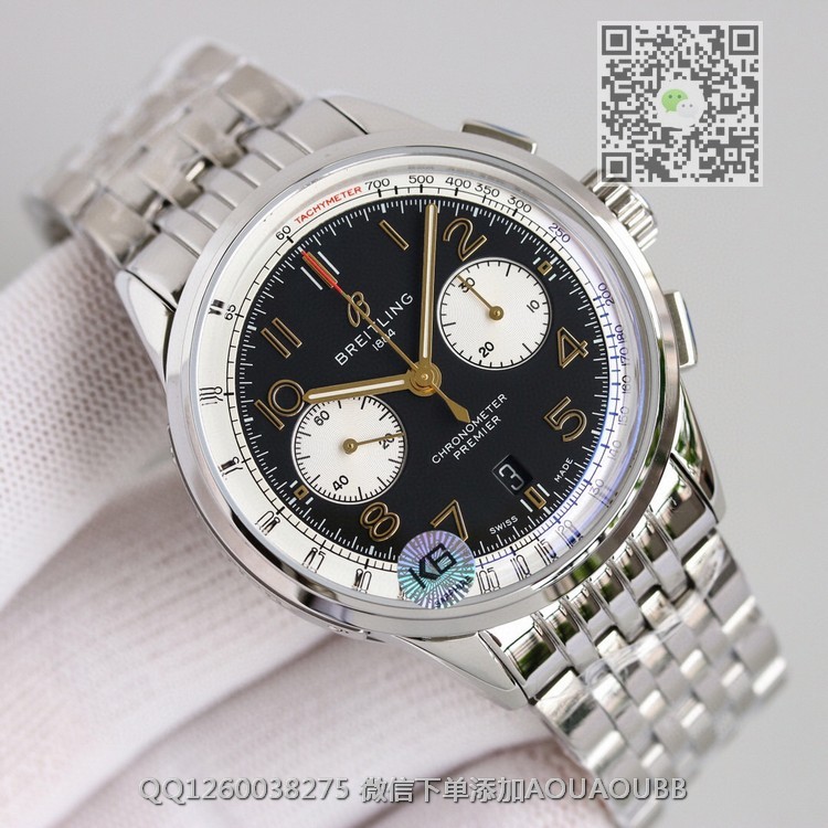 【品牌】百年灵【产品介绍】GF厂终极版 百年灵璞雅系列AB0118A11L1A1男士全自动计时候机械腕表 GF出品,复刻首选!【款式】男款【尺寸】直径42毫米,厚度13.65毫米【表带】精钢表带【镜面】锅盖弧面蓝宝石,双面防眩处理【机芯】ETA7750机芯【防水】50米防水【配件】原装盒,说明书,质保卡,吊牌,香港机打发票【品质检测】保证所有手表实物拍摄,所见即所得 , 手表发货前都会有严格检查测试,确保您收到的手表无质量问题