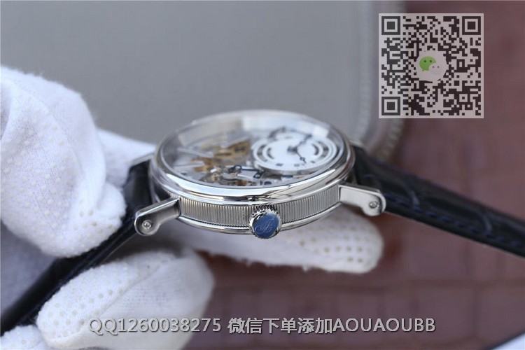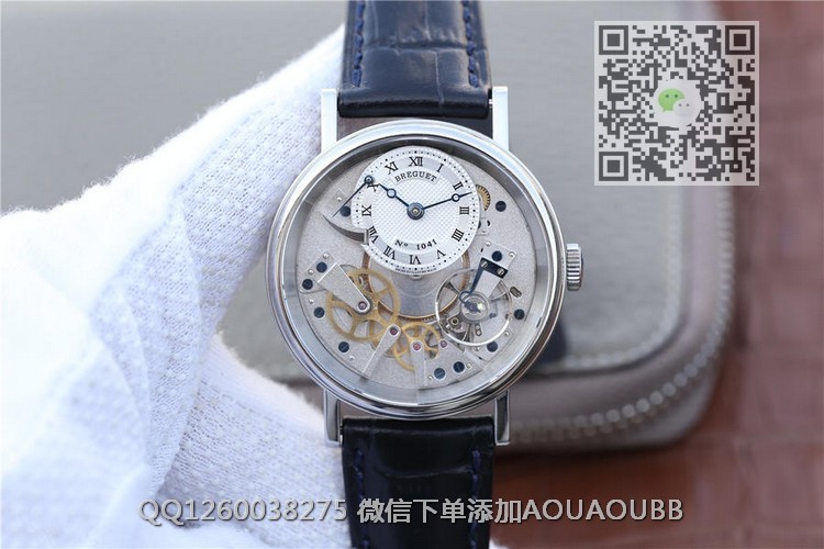 【产品介绍】宝玑传世系列7057BB/9/9W6男士机械手表,11超级复刻版腕表!真正的11原装开模与正品一致的前后动能显示功能正面的飞轮与齿轮功能为真功能所有功能均与正品一致真正的还原了宝玑传世7057,完全照正品结构做机芯正反双面真能量显示镀铂金机芯烧蓝表针 2017产品。将通常隐藏在夹板之下的桥架、发条盒、传动齿轮、擒纵机构和其它机芯零件直接展示于表盘之上,令精密机械运转的奥秘毫无保留的呈现于眼前。此款腕表正中央位置清楚可见发条盒,4点方位摆轮在匀称的桥架支撑下用饱含生命力的律动,6点到9点方位,传动轮系统缓慢而有规律的徐徐转动。主动传动系统完全暴露,描绘出时间流逝的奥秘。极具古典风格的焊接式圆角表耳,小巧精致,佩戴舒适,以螺丝栓固定表带,更添复古色彩。