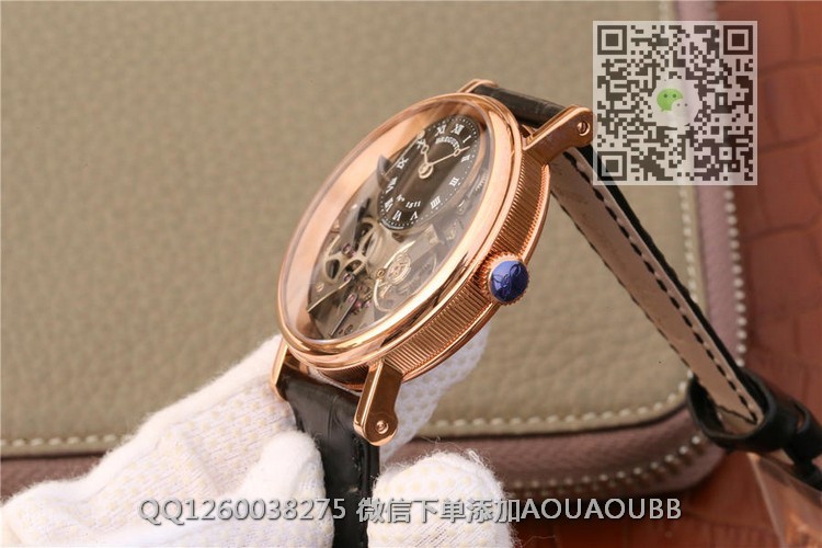 【品牌】宝玑【产品介绍】宝玑传世系列7057BB/9/9W6男士机械手表,1比1超级复刻版腕表!真正的1比1原装开模与正品一致的前后动能显示功能正面的飞轮与齿轮功能为真功能所有功能均与正品一致真正的还原了宝玑传世7057,完全照正品结构做机芯正反双面真能量显示镀铂金机芯烧蓝表针 2017产品。将通常隐藏在夹板之下的桥架、发条盒、传动齿轮、擒纵机构和其它机芯零件直接展示于表盘之上,令精密机械运转的奥秘毫无保留的呈现于眼前。此款腕表正中央位置清楚可见发条盒,4点方位摆轮在匀称的桥架支撑下用饱含生命力的律动,6点到9点方位,传动轮系统缓慢而有规律的徐徐转动。主动传动系统完全暴露,描绘出时间流逝的奥秘。极具古典风格的焊接式圆角表耳,小巧精致,佩戴舒适,以螺丝栓固定表带,更添复古色彩。【款式】男款【尺寸】直径40mm【表带】意大利牛皮表带【镜面】蓝宝石镜面【机芯】复刻正品cal.507DR1机芯【防水】50米【配件】原装盒,说明书,质保卡,吊牌,香港机打发票【品质检测】保证所有手表实物拍摄,所见即所得 , 手表发货前都会有严格检查测试,确保您收到的手表无质量问题