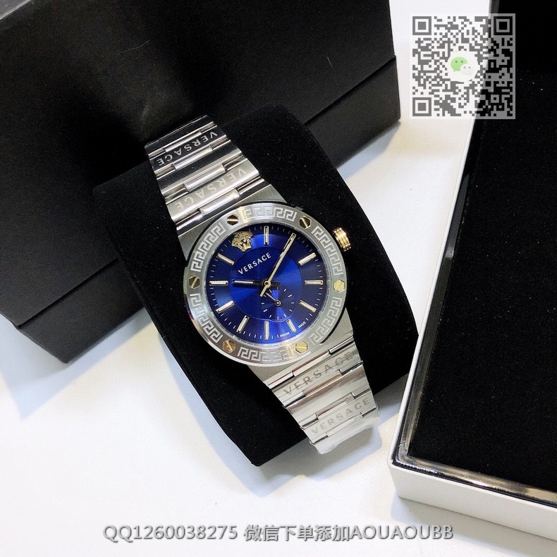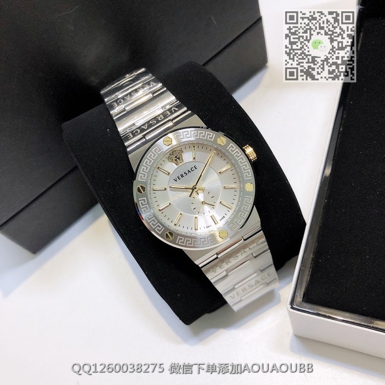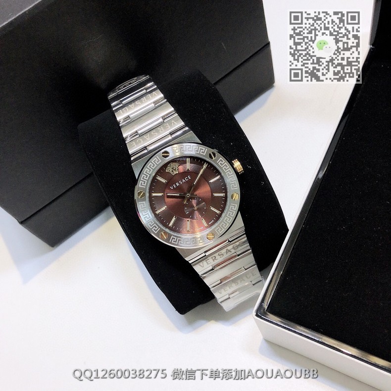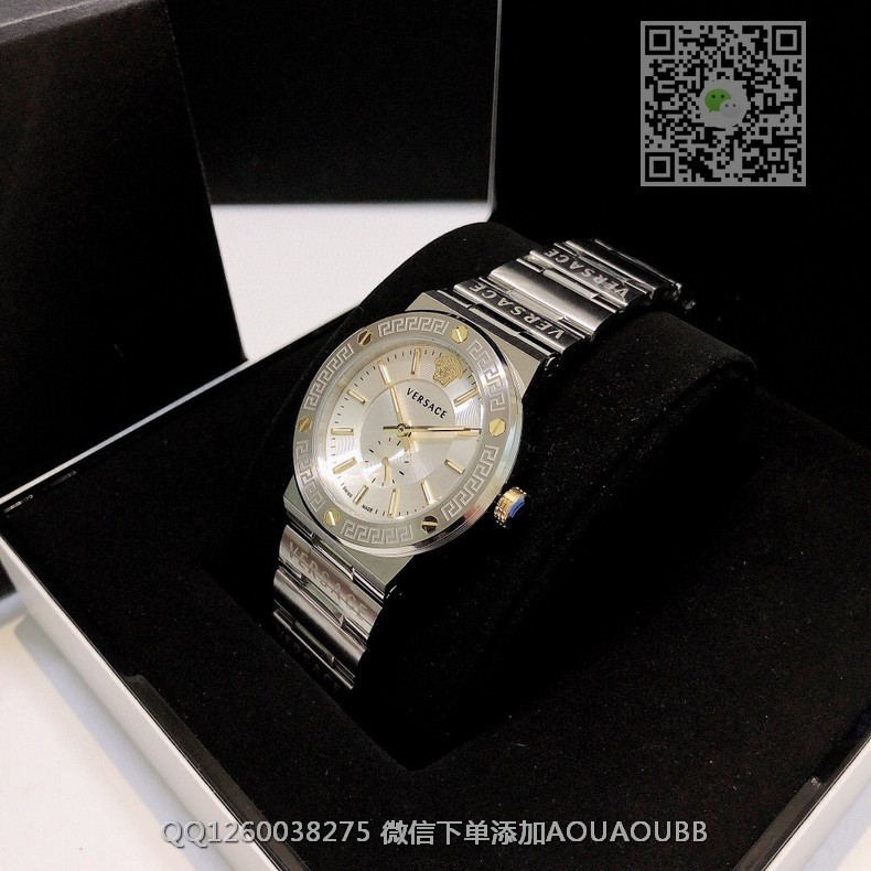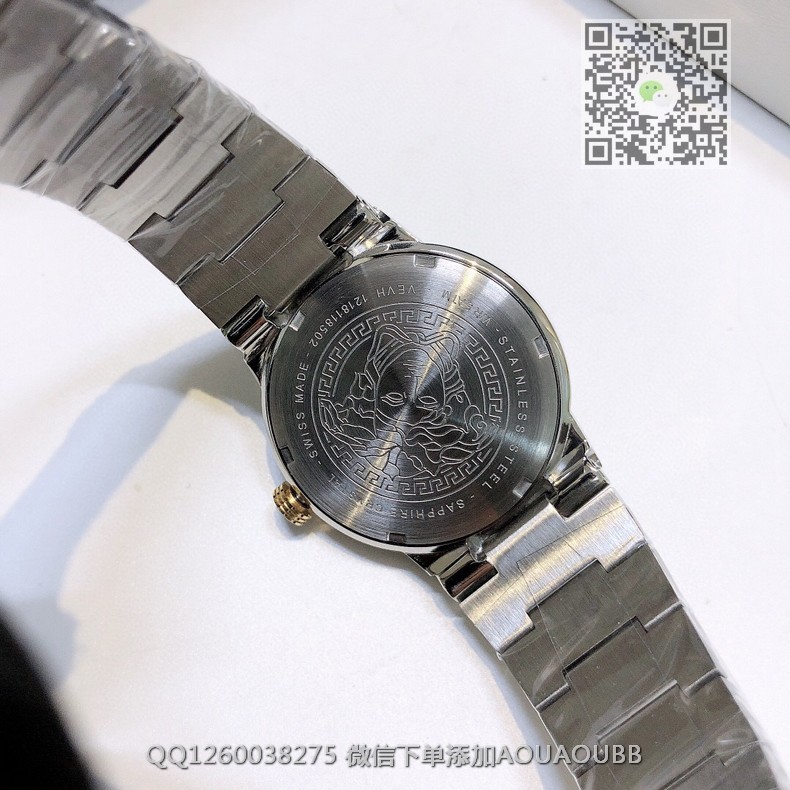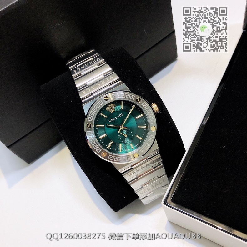 【品牌】范思哲【产品介绍】范思哲新款Versace Greca Logo 系列腕表。官网尺寸 36mm,瑞士石英机芯!绿色CD纹盘面释放复古摩登魅力,12时位美杜莎头像碰撞新潮艺术、展现瞩目风采,充满摩登现代感;薄而圆的外壳与矩形切割的表耳形成鲜明对比,表圈饰有希腊回纹与螺钉设计,镀金时针与指标、醒目张扬,掀起现在风范。抛光与拉丝质感结合,表链镌刻VERSACE字样,展现品牌华丽基因、赋予了女性化新颖设计。【款式】女款【尺寸】直径36mm【表带】精钢表带【镜面】蓝宝石镜面【机芯】瑞士石英机芯【防水】50米防水【配件】原装盒,说明书,质保卡,吊牌,香港机打发票【品质检测】保证所有手表实物拍摄,所见即所得 , 手表发货前都会有严格检查测试,确保您收到的手表无质量问题