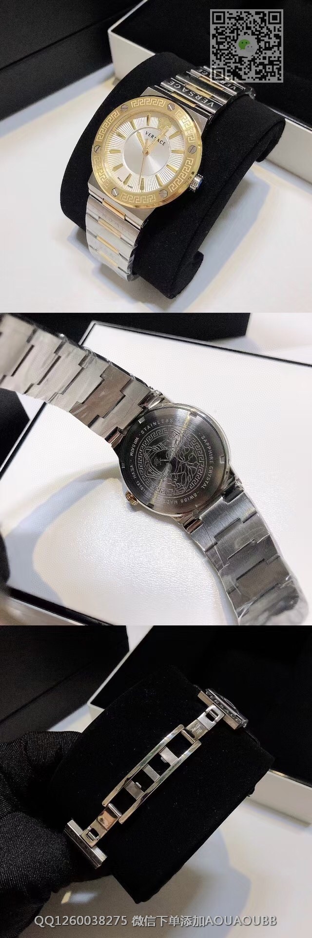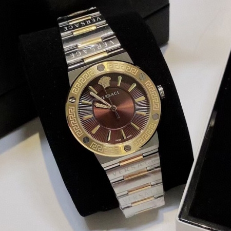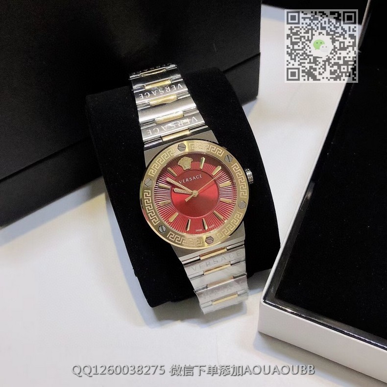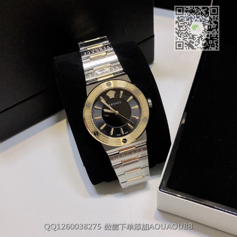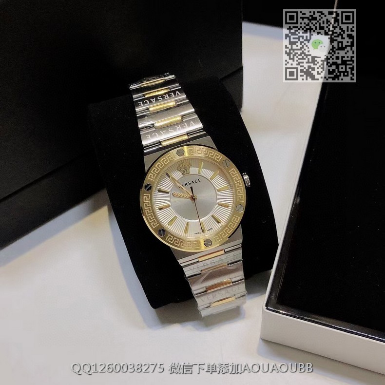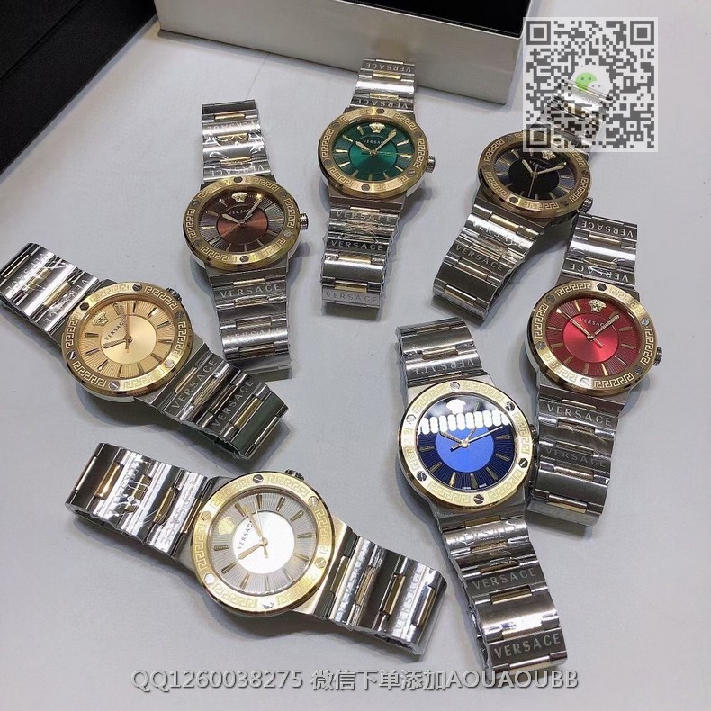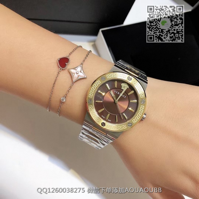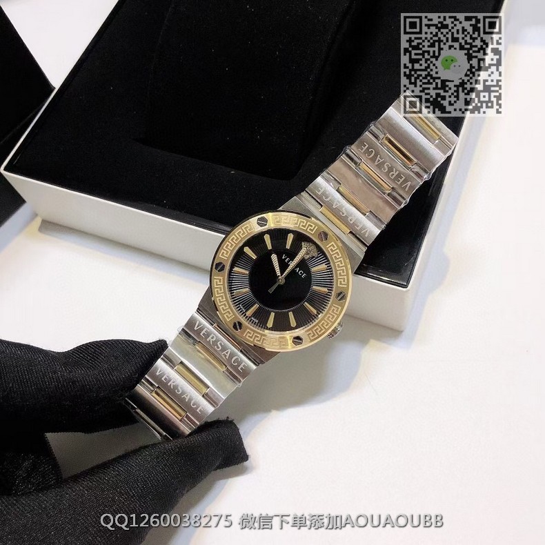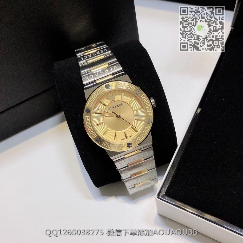 【品牌】范思哲【产品介绍】范思哲新款Versace Greca Logo 系列腕表。官网尺寸 36mm,瑞士石英机芯!绿色CD纹盘面释放复古摩登魅力,12时位美杜莎头像碰撞新潮艺术、展现瞩目风采,充满摩登现代感;薄而圆的外壳与矩形切割的表耳形成鲜明对比,表圈饰有希腊回纹与螺钉设计,镀金时针与指标、醒目张扬,掀起现在风范。抛光与拉丝质感结合,表链镌刻VERSACE字样,展现品牌华丽基因、赋予了女性化新颖设计【款式】女款【尺寸】直径36mm【表带】精钢表带【镜面】蓝宝石镜面【机芯】瑞士石英机芯【防水】50米防水【配件】原装盒,说明书,质保卡,吊牌,香港机打发票【品质检测】保证所有手表实物拍摄,所见即所得 , 手表发货前都会有严格检查测试,确保您收到的手表无质量问题
