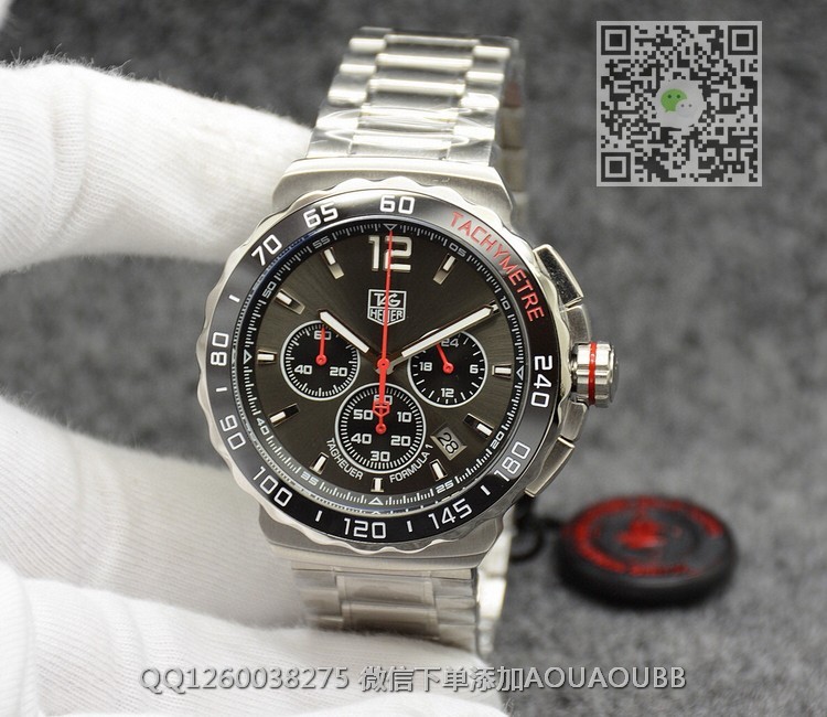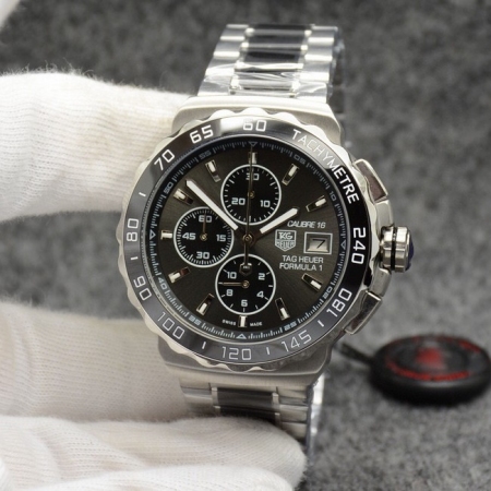 【品牌】豪雅【产品介绍】泰格豪雅F1系列男士运动型腕表【款式】男款【尺寸】直径44mm【表带】精钢表带【镜面】蓝宝石镜面【机芯】瑞士石英机芯【防水】50米防水【配件】原装盒,说明书,质保卡,吊牌,香港机打发票【品质检测】保证所有手表实物拍摄,所见即所得 , 手表发货前都会有严格检查测试,确保您收到的手表无质量问题