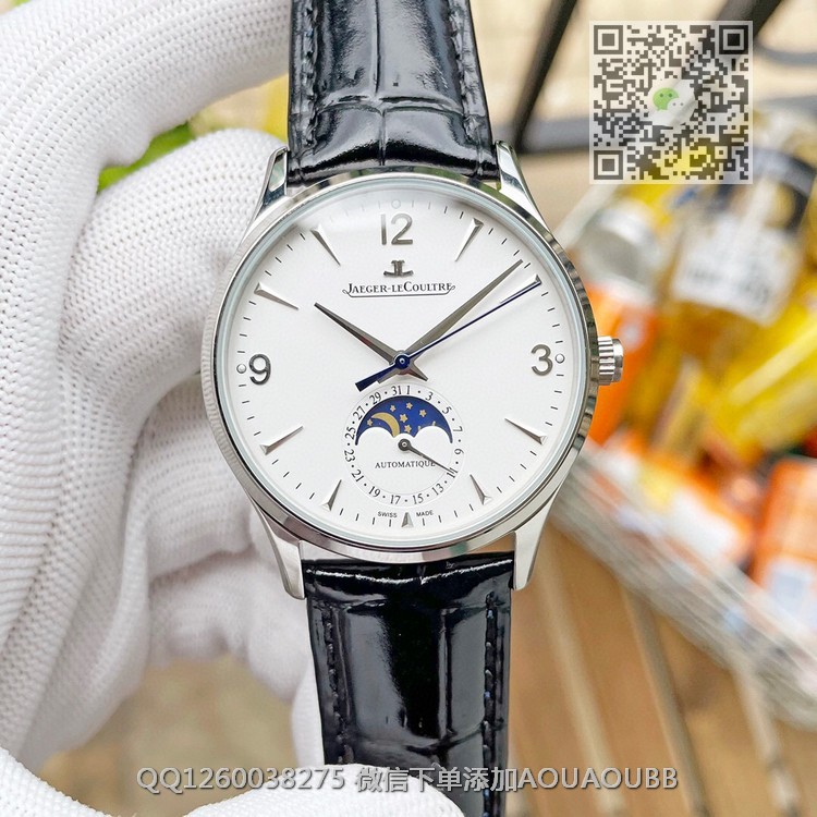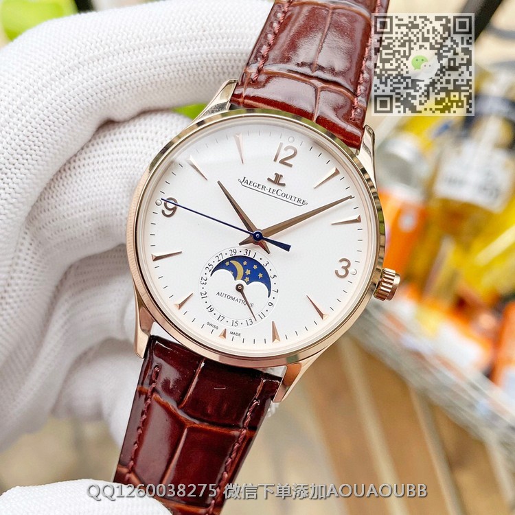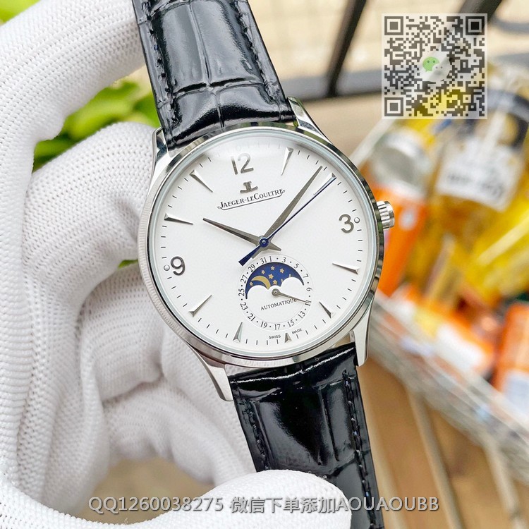 【品牌】积家【产品介绍】积家JaegerLecoultre精品男士腕表,经典大三针搭载月相设计,尊贵大气,绅士风范,卓越品质【款式】男款【尺寸】直径40mm【表带】意大利牛皮表带【镜面】蓝宝石镜面【机芯】瑞士ETA全自动机芯【防水】50米【配件】原装盒,说明书,质保卡,吊牌,香港机打发票【品质检测】保证所有手表实物拍摄,所见即所得 , 手表发货前都会有严格检查测试,确保您收到的手表无质量问题
