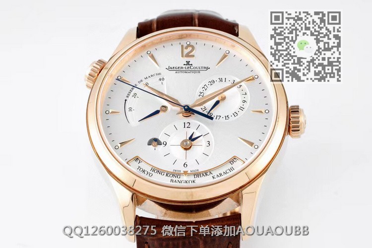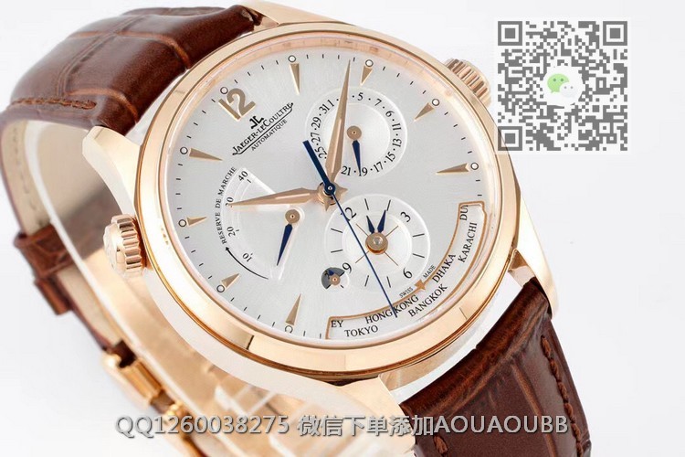ZF厂 积家大师系列1428421男士全自动机械腕表 同步正品cal.939A/1机芯  3点位置日期显示 6点双时区 9点动力储备显示 直径39mm