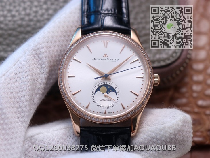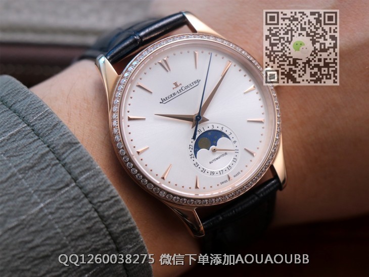 【品牌】积家【产品介绍】ZF精品积家月相大师系列,表壳直径39mmX9.9mm与原装同步。六点钟的子盘拥有阳历阴历(月相)双期显示,月相一月转一圈,功能和正品一致。【技术突破】采用9015改积家自产Cal.925/1机芯,功能百分百同步原装自产机芯,走时稳定。表扣升级【款式】男款【尺寸】39mmX9.9mm【表带】意大利牛皮表带【镜面】蓝宝石镜面【机芯】cal.925/1机芯(原装进口9015机芯改版复刻)【防水】50米【配件】原装盒,说明书,质保卡,吊牌,香港机打发票【品质检测】保证所有手表实物拍摄,所见即所得 , 手表发货前都会有严格检查测试,确保您收到的手表无质量问题