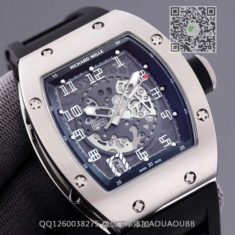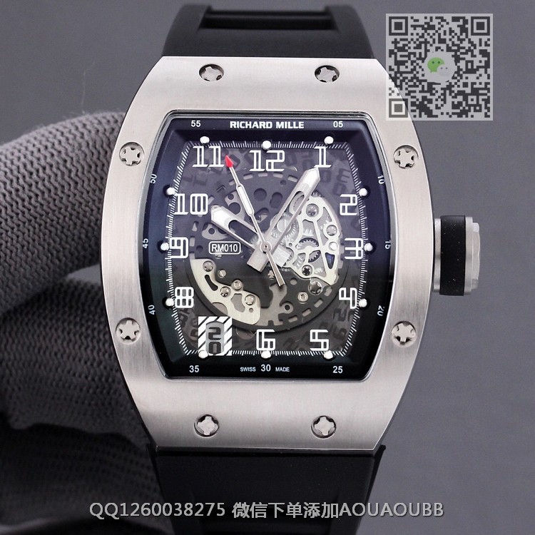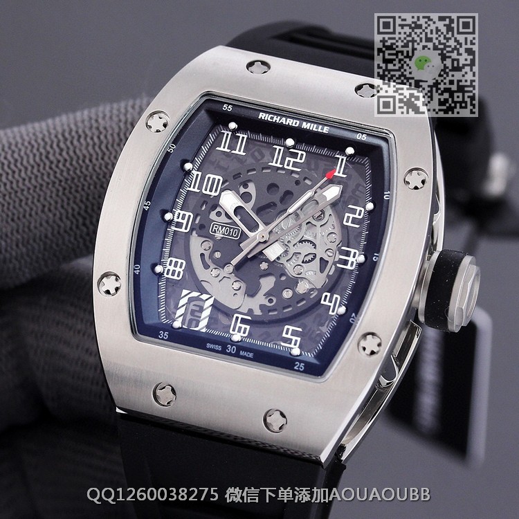 【品牌】理查德米勒【产品介绍】理查德米勒 Richard Mille RM010全新工艺时尚更前卫镂空设计最新特别款配置316L精钢鑫表壳耐磨天然进口橡胶表带全自动进口机械机芯 巅峰之作超越平凡 为你精致推荐男士臻品腕表精致传承真实效果品质的保证!【款式】男款【尺寸】49×41mm×15mm【表带】橡胶表带【镜面】蓝宝石镜面【机芯】复刻正品机芯【防水】50米防水【配件】原装盒,说明书,质保卡,吊牌,香港机打发票【品质检测】保证所有手表实物拍摄,所见即所得 , 手表发货前都会有严格检查测试,确保您收到的手表无质量问题