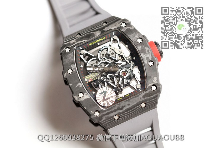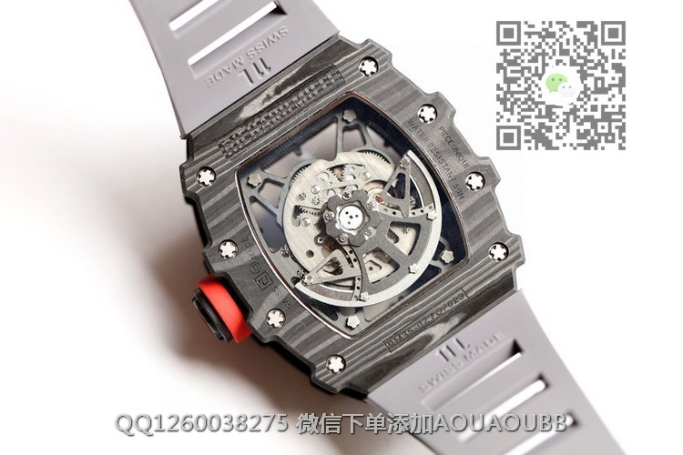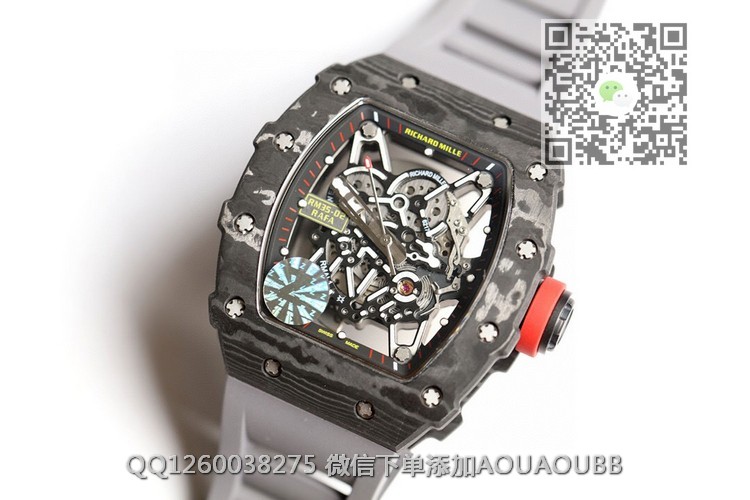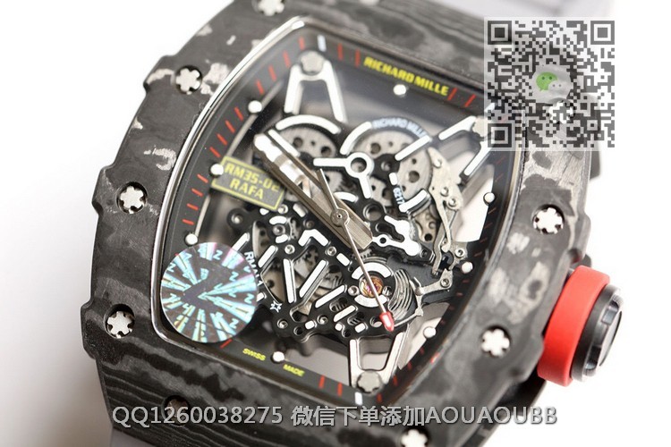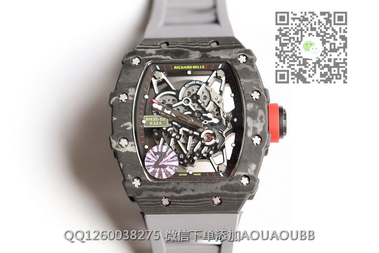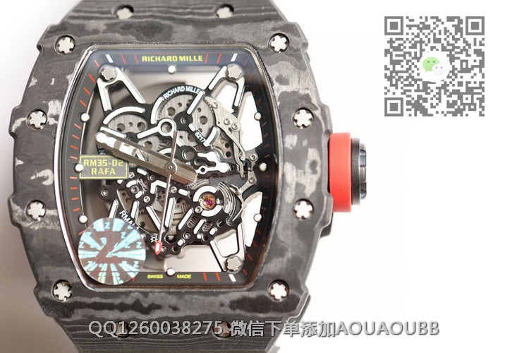 【产品介绍】顶级版本原装纹路理查徳.米尔RM35-02全碳纤维系列我们每一只壳全部是手工制作纹路,每一只壳纹路全部不同!!!特点:1:此复刻版表壳和底盖釆用高密度进口NTPT@碳纤维材料 2:碳纤维表壳表底和钛内胆两侧釆用同步CNC加工!使之壳上下与左右二侧毫无缝隙,经试水测试4Pa压力后均达到100%通过防水检验3:表带釆用马来西亚进口纯橡胶材料制作而成,使之呈现出超韧性及柔软的感觉,市面上最强的RM专用橡胶带,做到能与正品互换的效果4:依原版原理采用钛金属材料作为内胆及釆用最前沿的电火花精切缕空技术!机芯釆用进口seiko自动机芯5:表壳底上的字使用最前沿的超声波精准雕刻技术,使表底整体呈现岀高贵的质感6:玻璃釆用目前市面上最高硬度的蓝宝石水晶玻璃材料!!!