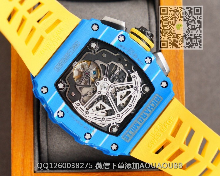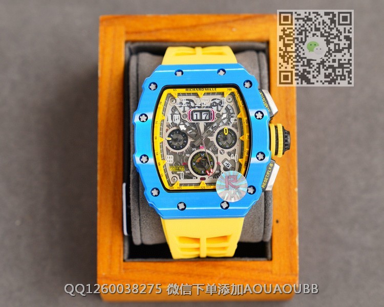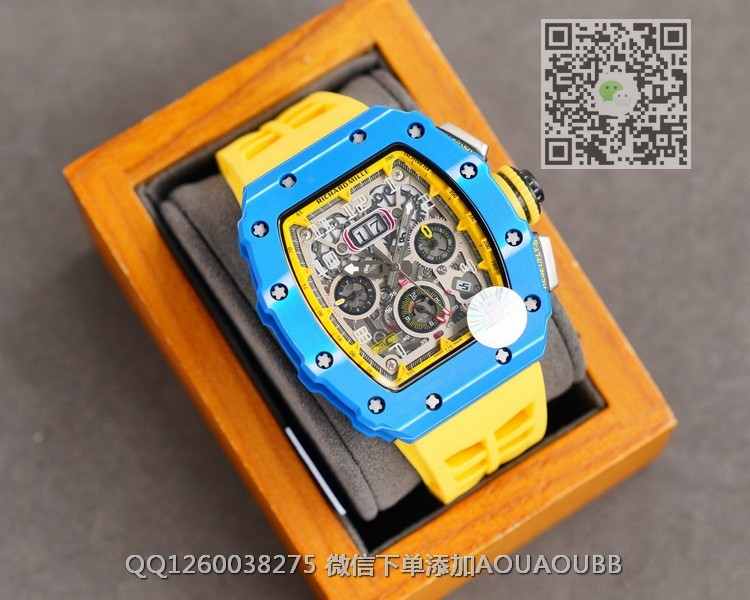 【品牌】理查德米勒【产品介绍】RM厂出品理查德•米勒 (腕表型号:RM11-03)艺术提升了全新层次 PVD电镀精钢壳套 搭载大日历 /逆跳多功能全自动机械机芯进口橡胶表带原装折叠扣 展现着理查品牌的高端与经典!【款式】男款【尺寸】40mmx50mm【表带】橡胶表带【镜面】蓝宝石镜面【机芯】复刻正品机芯【防水】50米防水【配件】原装盒,说明书,质保卡,吊牌,香港机打发票【品质检测】保证所有手表实物拍摄,所见即所得 , 手表发货前都会有严格检查测试,确保您收到的手表无质量问题