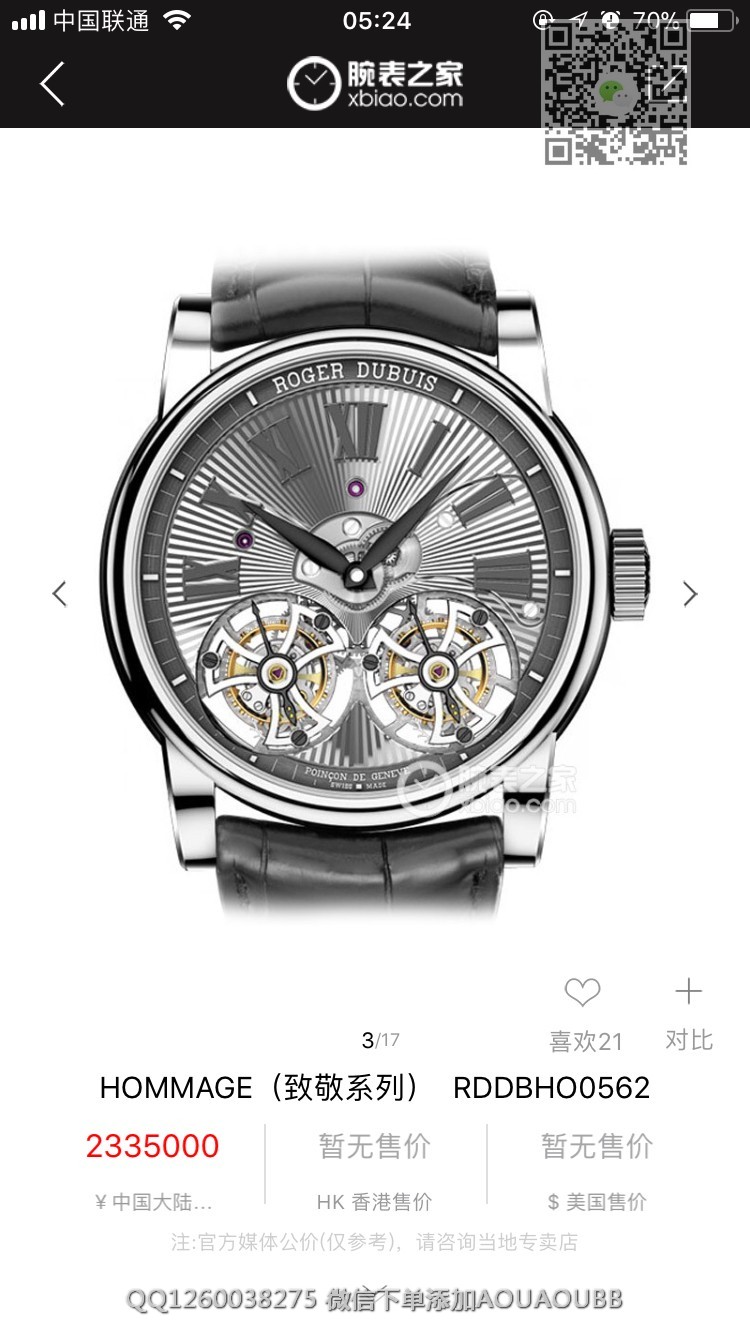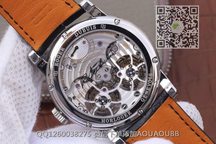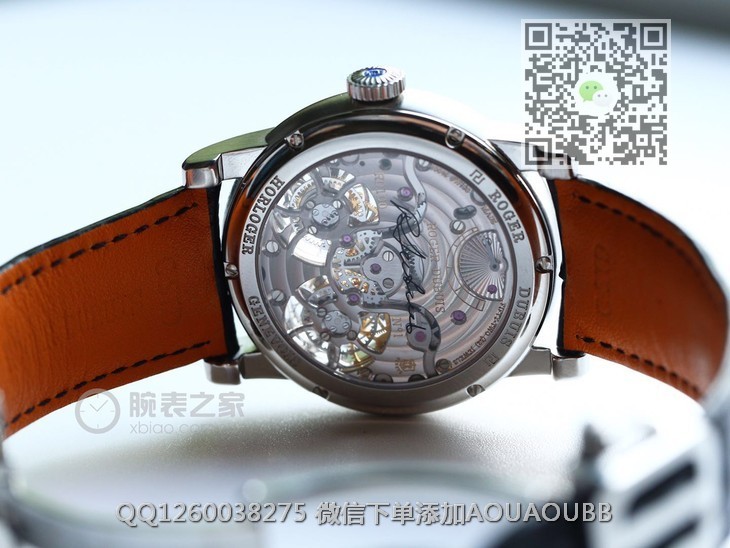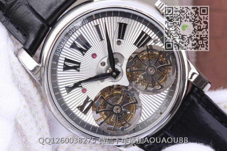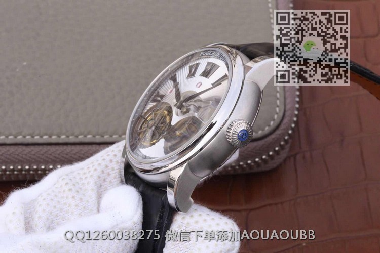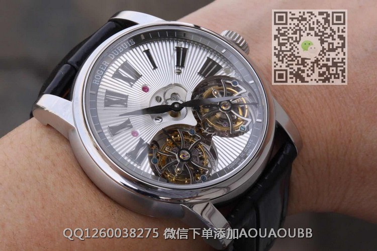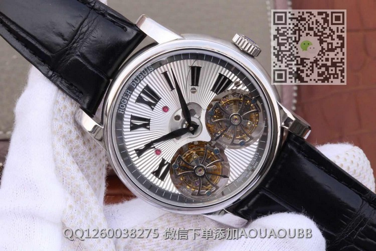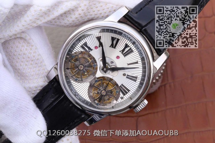 【品牌】罗杰杜彼【产品介绍】史上贵的复刻表--【JB厂真双陀飞轮】罗杰杜彼HOMMAGE(致敬系列)RDDBHO0563双陀飞轮腕表诞生,搭载两颗飞行真陀飞轮稳定运行。这是钟表界又一历史时刻,每一颗机芯都要经历数十次模拟QE测试和上百次调试,架设RD100陀飞轮手动上链板块终于稳定合格,静止情况下手动可上链80圈左右,镀18k金圈口,直径45mm,两颗陀飞轮匀速转动,优雅动人,满足你的感官,冲击旁人目光,并且大限度的克服地心引力阻障,走时精准无比。正反蓝宝石水晶玻璃,自带美洲真鳄鱼皮,原装RD折叠扣,背面克隆罗杰杜彼先生签名。之作,绝无仅有,数量少得可怜,值得钟表爱好者收藏。JB厂-专为陀飞轮而生。【款式】男款【尺寸】直径45mm【表带】美洲鳄鱼皮表带【镜面】蓝宝石镜面【机芯】双陀飞轮机芯【防水】50米防水【配件】原装盒,说明书,质保卡,吊牌,香港机打发票【品质检测】保证所有手表实物拍摄,所见即所得 , 手表发货前都会有严格检查测试,确保您收到的手表无质量问题