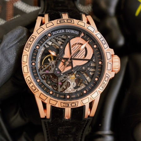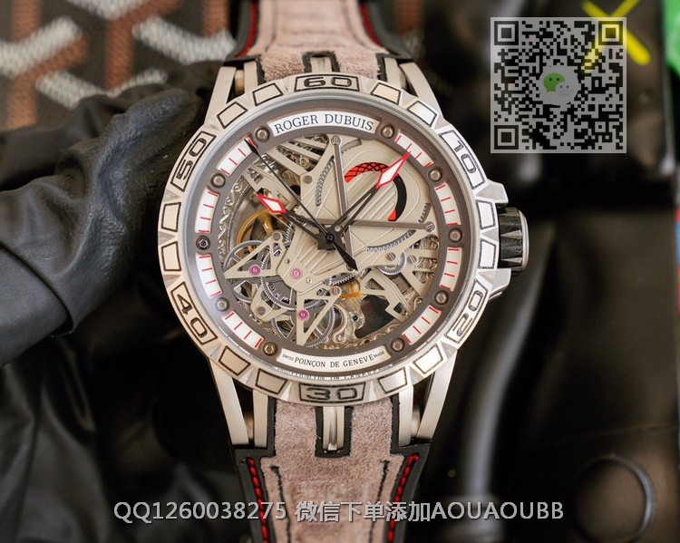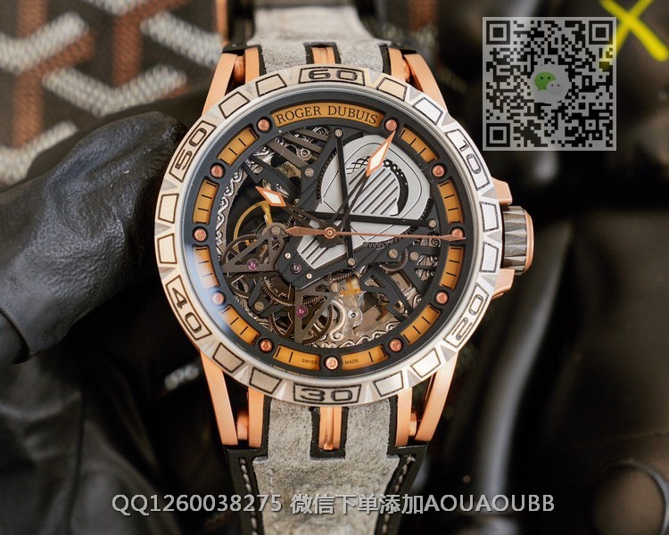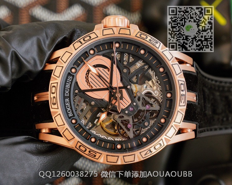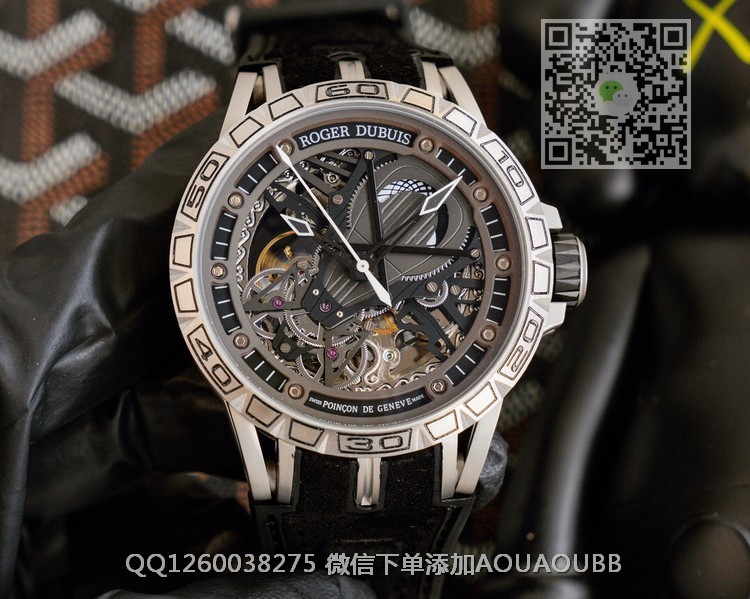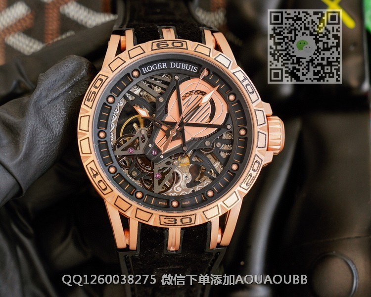 【品牌】罗杰杜彼【产品介绍】罗杰杜彼 ROGER DUBUIS (豪爵)Excalibur 王者系列自动上链机芯,表壳:46毫米 , Sapphire crystal Carbon 钛合金黑色DLC 涂层钛合金,镌刻日内瓦印记。倍耐力橡胶表带,力与美的结合,色彩斑斓的搭配,飞轮镂空科技面,演绎机械运动之美!!!【款式】男款【尺寸】直径46mm【表带】牛皮橡胶表带【镜面】蓝宝石镜面【机芯】原装进口82S7机械机芯【防水】50米防水【配件】原装盒,说明书,质保卡,吊牌,香港机打发票【品质检测】保证所有手表实物拍摄,所见即所得 , 手表发货前都会有严格检查测试,确保您收到的手表无质量问题