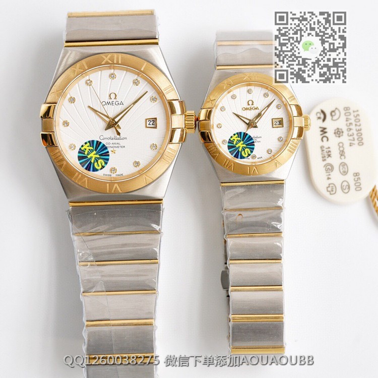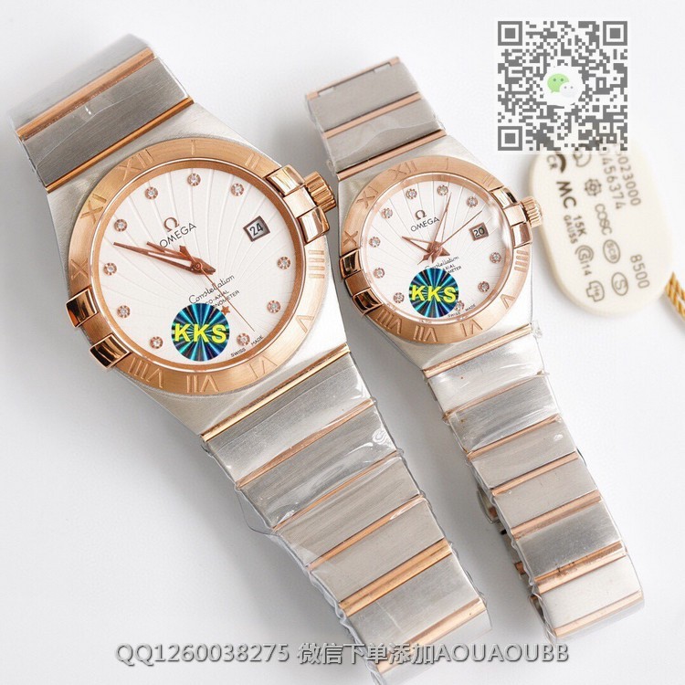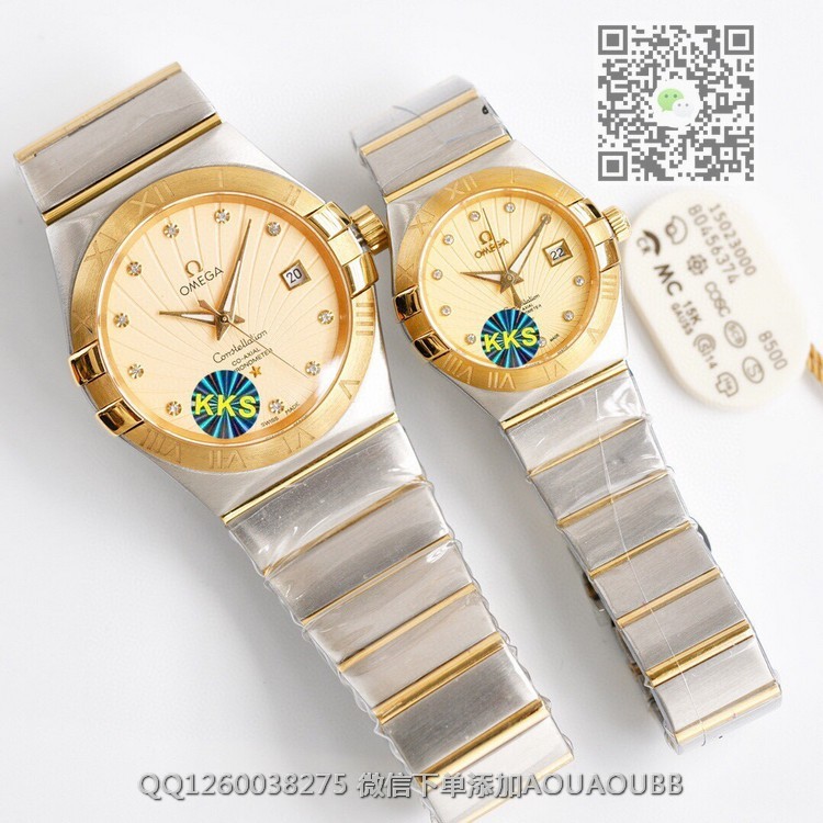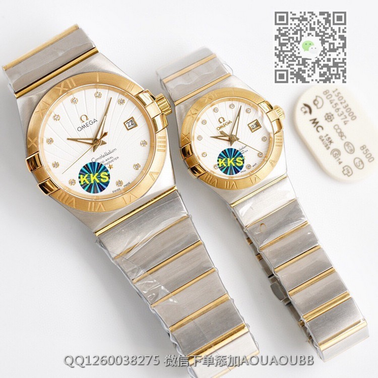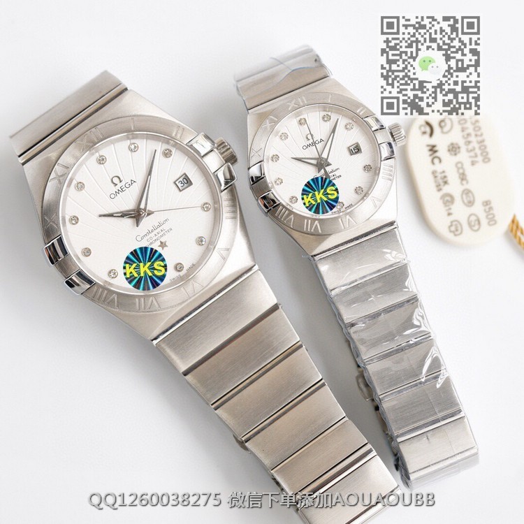 【品牌】欧米茄【产品介绍】KKS全新新品上市三码合一,独家质量,独家包装 2021年全新升级版到货修正品质独家订制8500机芯特别设计,实拍图经典款式永恒不变欧米茄omega情侣表,双鹰星座系列,瑞士机质量100%超强防水夜光蓝宝石玻璃背透设计,,三度防水可放心游泳表里如一独具匠心【款式】情侣款【尺寸】男38mmx10.5mm,女28mmx10.5mm【表带】精钢表带【镜面】蓝宝石镜面【机芯】瑞士ETA全自动机芯【防水】50米【配件】原装盒,说明书,质保卡,吊牌,香港机打发票【品质检测】保证所有手表实物拍摄,所见即所得 , 手表发货前都会有严格检查测试,确保您收到的手表无质量问题