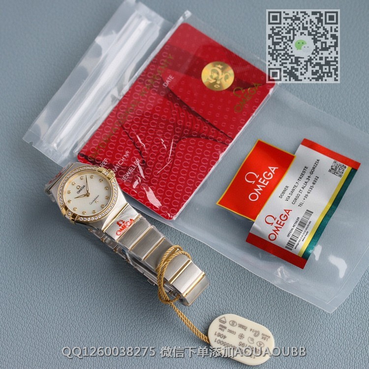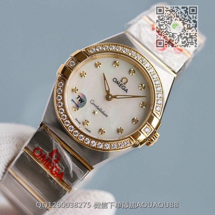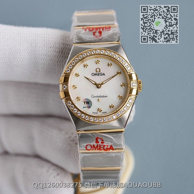 【品牌】欧米茄【款式】女款【产品介绍】最高版本!TW厂欧米茄女款星座系列28mm石英腕表,每个零件都是原装一比一开模。石英星座所有散件均可同原版互用!表带尾粒logo采用纯18k金,永不褪色!表壳把管采用内六角旋入式把管,防水性能更佳!壳的耳位经过线切割慢走丝加工而出,慢工出细活!镜面玻璃电镀air双面无色增透膜,通透十足字面纹路.logo.五角星及钻的镶嵌手法按原版来,细节讲究!TW出品,你值得拥有!【尺寸】28mm【表带】精钢表带【镜面】蓝宝石镜面【机芯】瑞士原装石英机芯 走时精准稳定0误差【防水】50米【配件】原装盒,说明书,质保卡,吊牌,香港机打发票【品质检测】保证所有手表实物拍摄,所见即所得 , 手表发货前都会有严格检查测试,确保您收到的手表无质量问题
