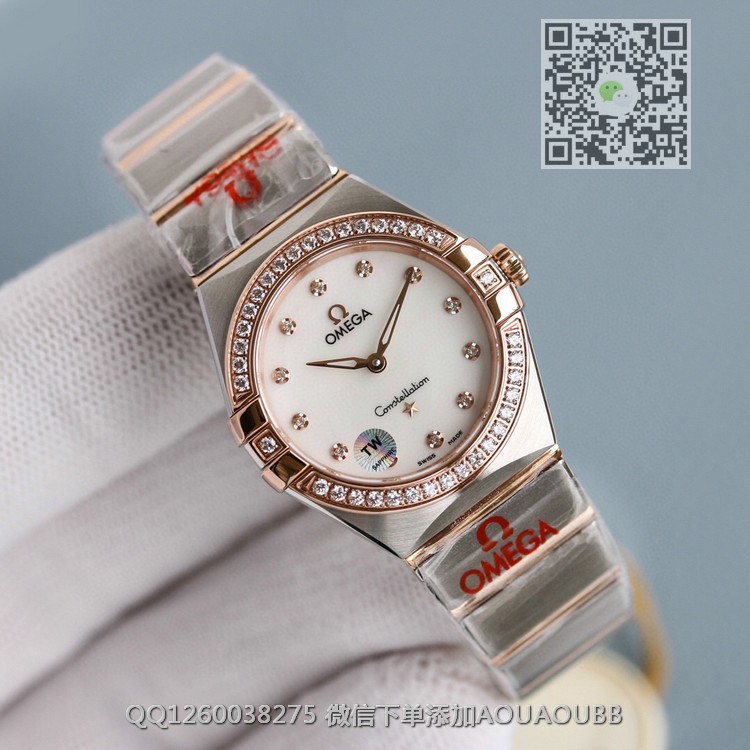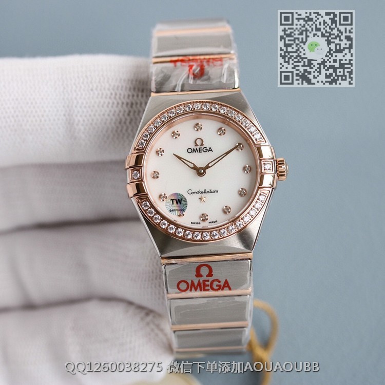 【品牌】欧米茄【款式】女款【产品介绍】最高版本!TW厂欧米茄女款星座系列28mm石英腕表,每个零件都是原装一比一开模。石英星座所有散件均可同原版互用!表带尾粒logo采用纯18k金,永不褪色!表壳把管采用内六角旋入式把管,防水性能更佳!壳的耳位经过线切割慢走丝加工而出,慢工出细活!镜面玻璃电镀air双面无色增透膜,通透十足字面纹路.logo.五角星及钻的镶嵌手法按原版来,细节讲究!TW出品,你值得拥有!【尺寸】28mm【表带】精钢表带【镜面】蓝宝石镜面【机芯】瑞士原装石英机芯 走时精准稳定0误差【防水】50米【配件】原装盒,说明书,质保卡,吊牌,香港机打发票【品质检测】保证所有手表实物拍摄,所见即所得 , 手表发货前都会有严格检查测试,确保您收到的手表无质量问题