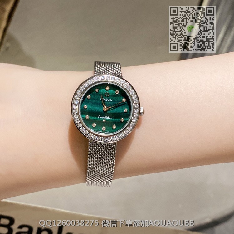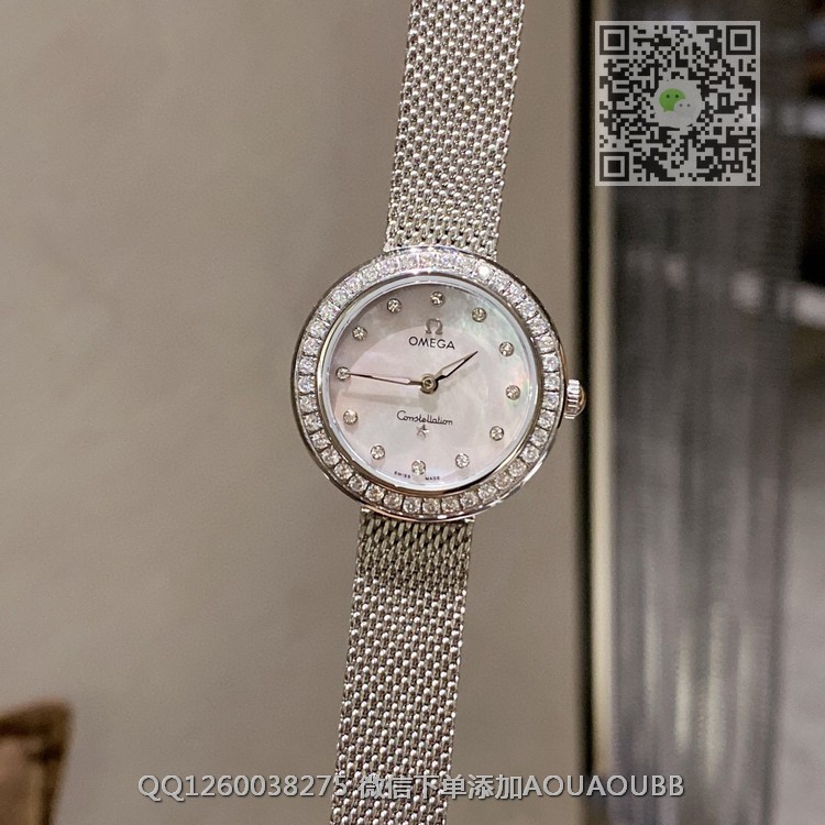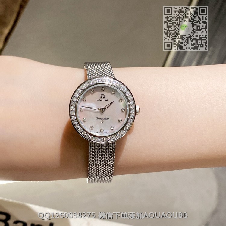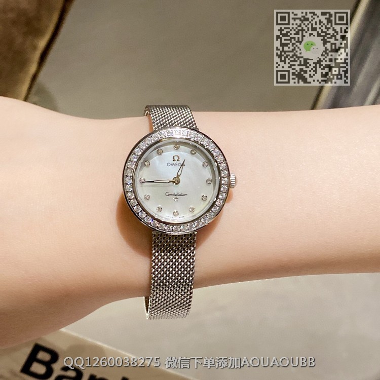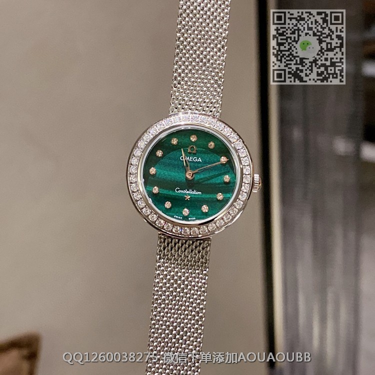 【品牌】欧米茄【产品介绍】OMEGA-欧米茄最新碟飞系列女士腕表,将华丽与经典融合,创造出惊艳巨作,表盘清新淡雅,色彩的格调将华丽装点腕间,悦享浪漫之感,316精钢表壳,魅力彰显,出独特的美观。【款式】女款【尺寸】直径32mm【表带】精钢表带【镜面】蓝宝石镜面【机芯】瑞士石英机芯 走时精准稳定0误差【防水】50米【配件】原装盒,说明书,质保卡,吊牌,香港机打发票【品质检测】保证所有手表实物拍摄,所见即所得 , 手表发货前都会有严格检查测试,确保您收到的手表无质量问题