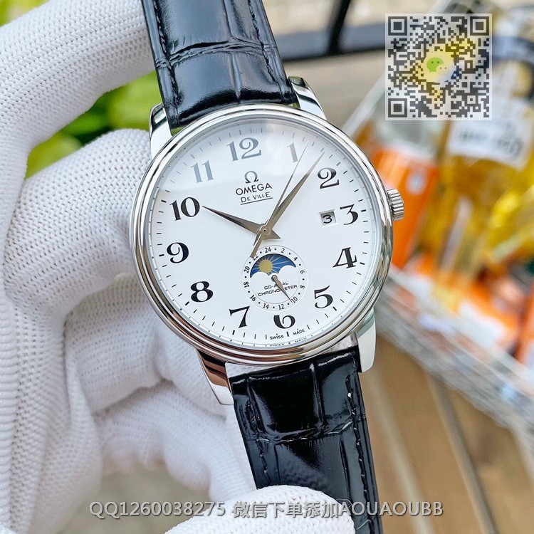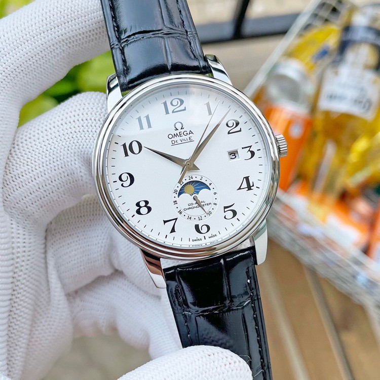 【品牌】欧米茄【产品介绍】欧米茄Omega精品男士腕表,经典大三针搭载月相设计,尊贵大气,绅士风范,卓越品质,热卖全城【款式】男款【尺寸】直径40mm【表带】意大利牛皮表带【镜面】蓝宝石镜面【机芯】瑞士ETA全自动机芯【防水】50米【配件】原装盒,说明书,质保卡,吊牌,香港机打发票【品质检测】保证所有手表实物拍摄,所见即所得 , 手表发货前都会有严格检查测试,确保您收到的手表无质量问题