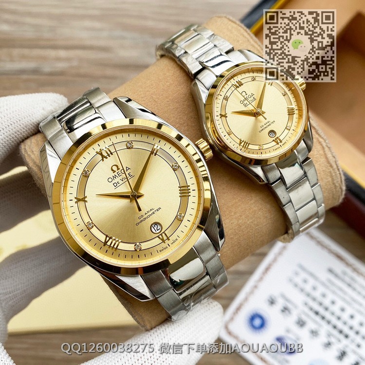 【品牌】欧米茄【产品介绍】欧米茄Omega 精品情侣对表,携手而来,简约精致,品质精湛,热卖全城【款式】情侣款【尺寸】男士41mmx11mm/女士30mmx11mm【表带】精钢表带【镜面】蓝宝石镜面【机芯】瑞士ETA全自动机芯【防水】50米【配件】原装盒,说明书,质保卡,吊牌,香港机打发票【品质检测】保证所有手表实物拍摄,所见即所得 , 手表发货前都会有严格检查测试,确保您收到的手表无质量问题