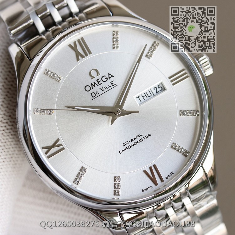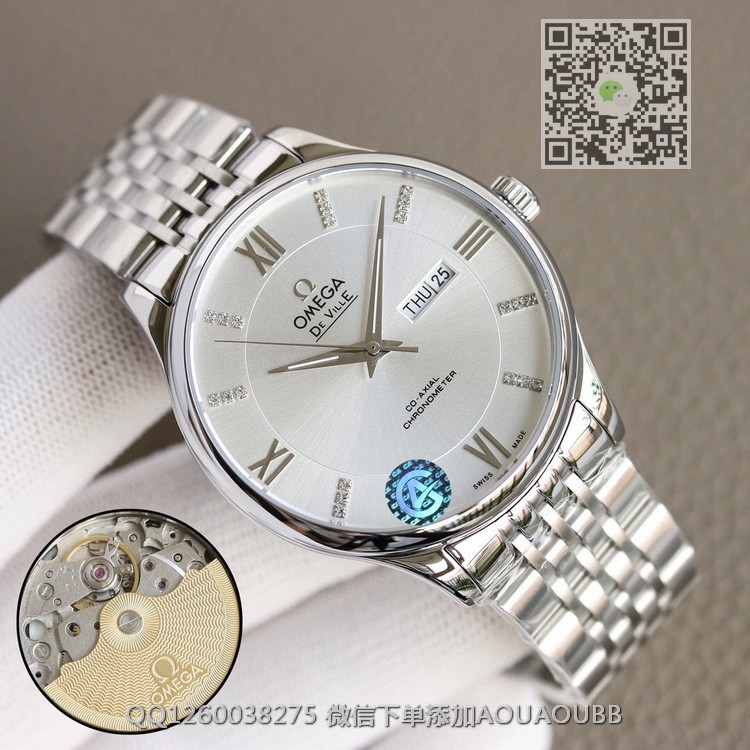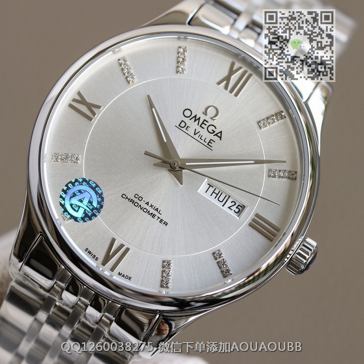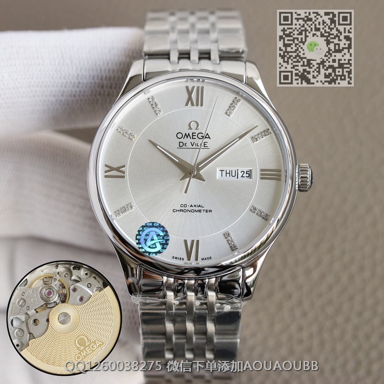 【品牌】欧米茄【产品介绍】沉稳有型,魅力不凡欧米茄OMEGA男士腕表,表款简洁大气而不失从容优雅的绅士风度!简约的表盘设计,呈现出永不过时的经典品位,双卜蓝宝石玻璃镜面,不仅通透美观,同时也不必担心佩戴的过程刮花镜面影响美观,内置进口全自动机械机芯,品质优异,零故障三点钟位置置设星期日期窗口,为简约的腕表再添实用性,40毫米的316L精钢表壳,精细的抛光打磨,光泽明亮,腕表搭配富有质感的真皮表带,更在无形中展现男士的自信风度【款式】男款【尺寸】直径40mm【表带】精钢表带【镜面】蓝宝石镜面【机芯】瑞士ETA全自动机芯【防水】50米【配件】原装盒,说明书,质保卡,吊牌,香港机打发票【品质检测】保证所有手表实物拍摄,所见即所得 , 手表发货前都会有严格检查测试,确保您收到的手表无质量问题