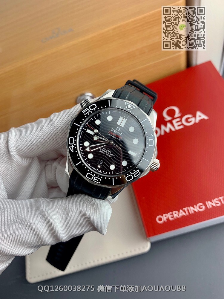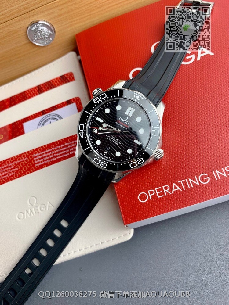 【品牌】欧米茄【产品介绍】热度NO.1爆款潜水表来袭——欧米茄海马300米,黑马产品,年度诚意之作,同价位质量之最!重新定义海马300完美诠释性价比!欧米茄海马系列300米潜水表,配置升级优化,超强夜光效果,同步最新42mm尺寸波浪凹纹陶瓷表盘与陶瓷表圈完美融合,更显层次立体!内置全新日本进口8215机芯,走时稳准无售后表壳拉丝做了细腻的打磨,与表带保持一致纹路,表壳侧面10点位设有标志性排氦气阀门,独具匠心!认准独家品质【款式】男款【尺寸】直径42mm【表带】橡胶表带【镜面】蓝宝石镜面【机芯】原装进口8215机芯【防水】50米【配件】原装盒,说明书,质保卡,吊牌,香港机打发票【品质检测】保证所有手表实物拍摄,所见即所得 , 手表发货前都会有严格检查测试,确保您收到的手表无质量问题