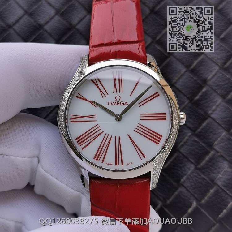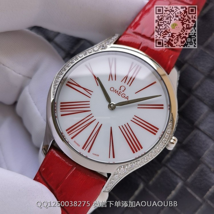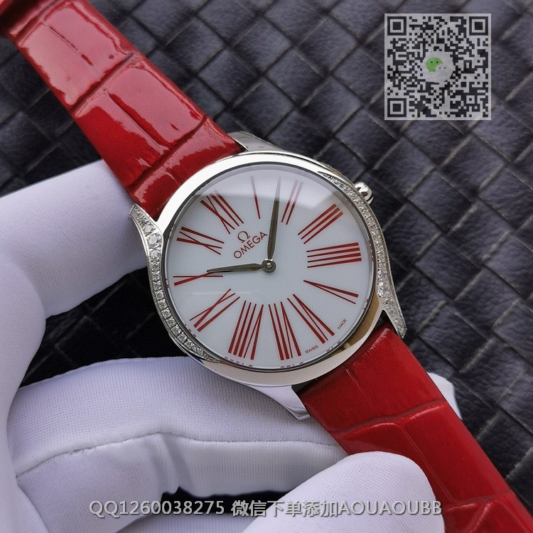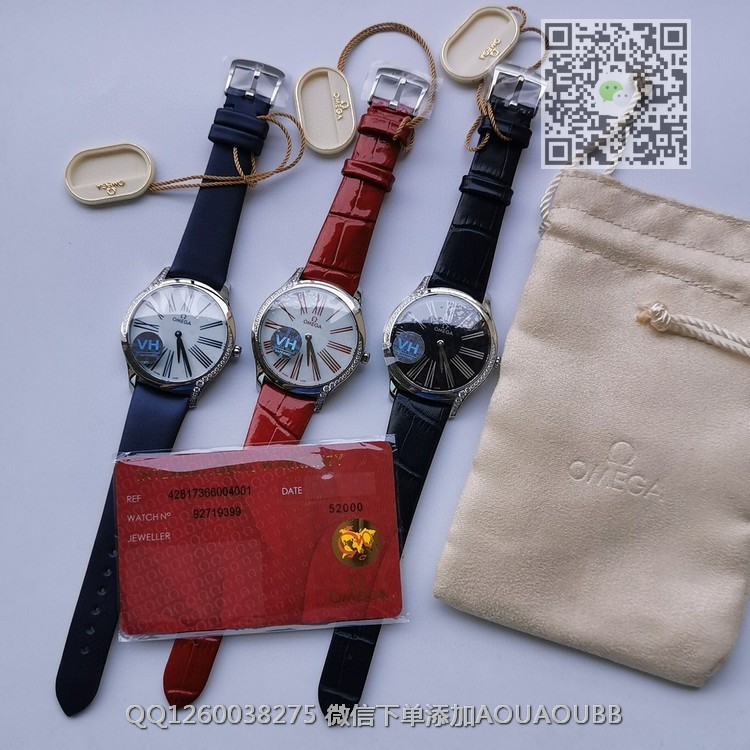 【品牌】欧米茄【款式】女款【尺寸】直径36mm【产品介绍】OMG 拥有打造精美女士腕表的悠久传统。这款具有现代风格的全新碟飞名典系列女士腕表以纯粹的设计美学打造,演绎前沿时尚理念。【表壳】VH定义最出色1:1工艺,纤薄的36毫米表壳采用精钢打造而成,沿表壳两侧曲线优雅铺镶38颗单翻切割钻石。【字面】VH重本打造搪瓷亮漆白色表盘,与原装技术水平处理透明浮层,环绕转印蓝色罗马数字。【原装机芯】VH采用纯正原版机芯,正品出厂的4061型号,延续原装血统【表冠】VH不惜工本,表冠镶饰一颗“南非”钻石,周围环绕着由5个欧米茄品牌标识相互交叠而成的红色陶瓷花朵图案。【表带表扣】VH选用原装丝带料制作表带外层,里皮与原装同步牛皮,严谨细节的钢扣,媲美正品,绝对顶级!【镜面】蓝宝石镜面【防水】50米【配件】原装盒,说明书,质保卡,吊牌,香港机打发票【品质检测】保证所有手表实物拍摄,所见即所得 , 手表发货前都会有严格检查测试,确保您收到的手表无质量问题